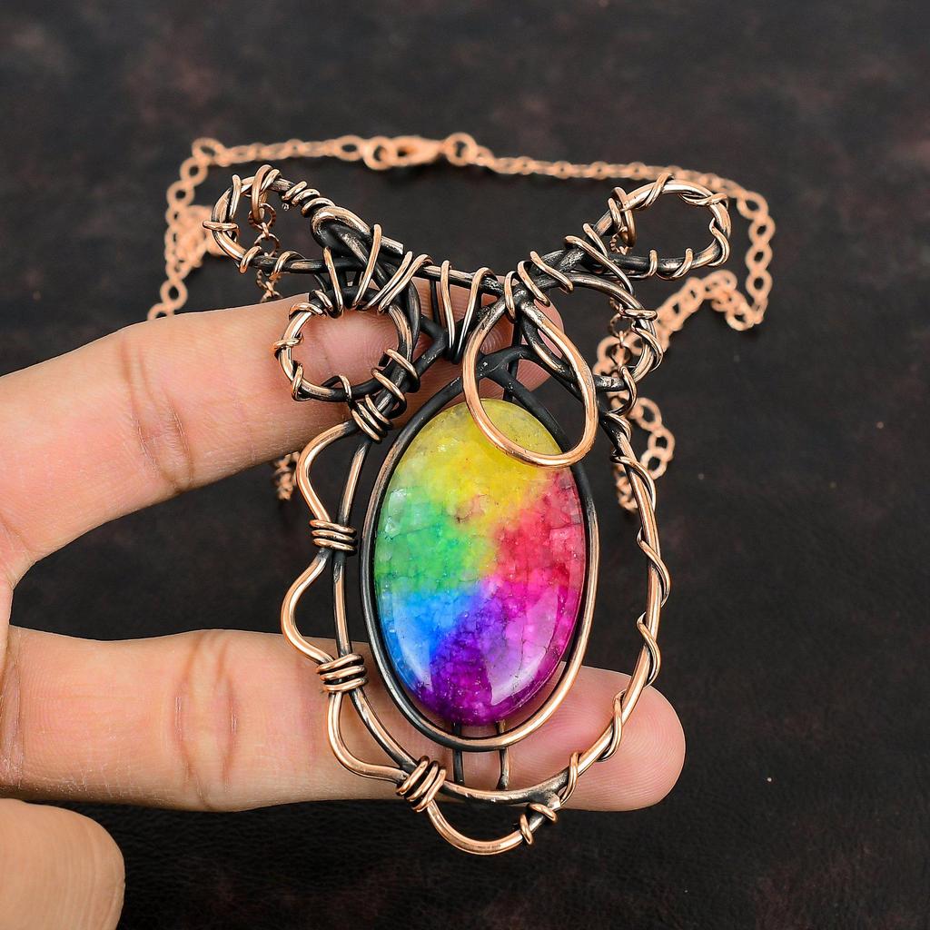 Ожерелье Друза Радужного Солнечного Кварца, Ожерелье из Драгоценного Камня, Оплетенное Медной Проволокой, Ожерелье с Регулируемой Цепочкой, Медные Украшения Ручной Работы, Подарки на Помолвку