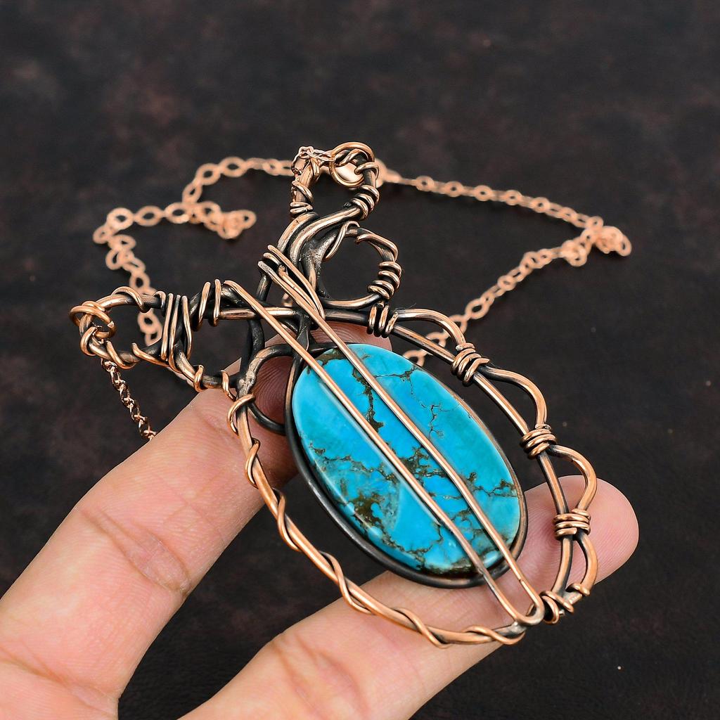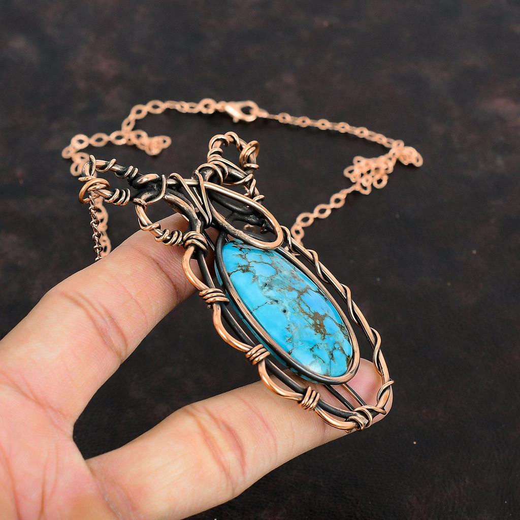 Тибетская бирюза ожерелье Ожерелье, обмотанное медной проволокой Ручные медные украшения Регулируемая цепочка Ожерелье с драгоценными камнями Подарки для мамы