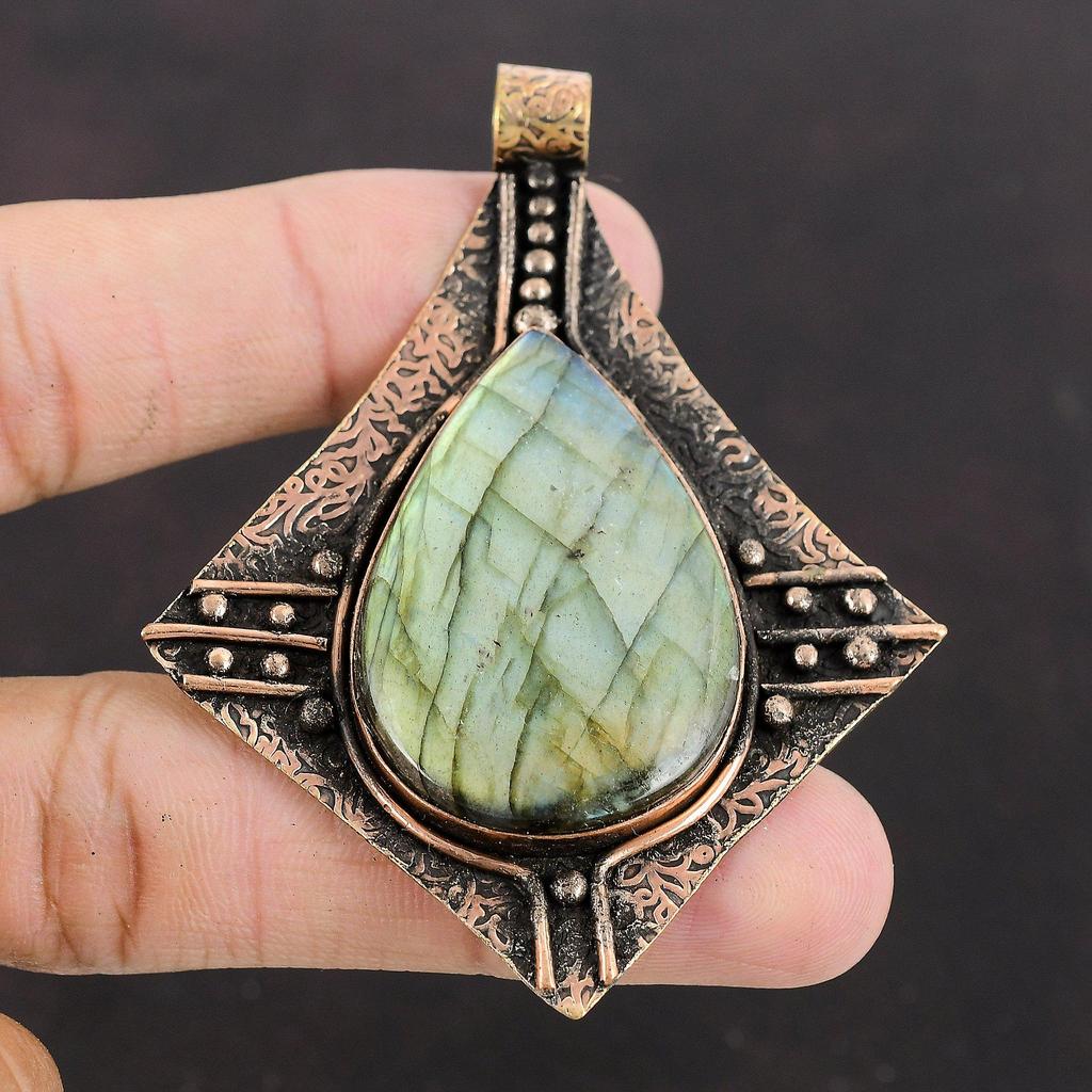 Подвеска из лабрадорита Медный кулон Ювелирные изделия из лабрадорита Подвеска ручной работы Высокое качество Подвеска из драгоценного камня Дизайнерские медные украшения Подарок для девочек