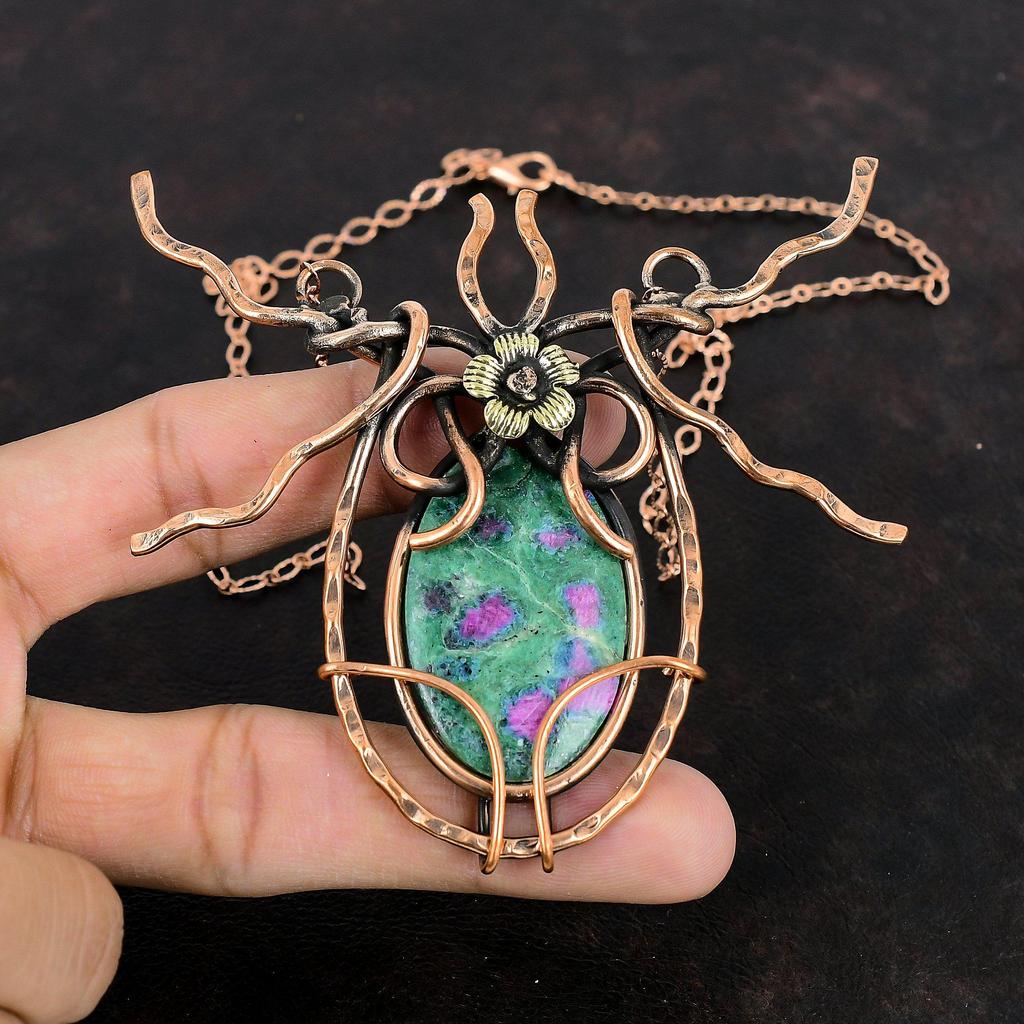 Ожерелье из рубина-фуксита, обернутое медной проволокой, ожерелье с регулируемой цепочкой, медные украшения ручной работы, ожерелье из натурального драгоценного камня, подарок для мамы — купить товар онлайн с бесплатной доставкой по всему миру!