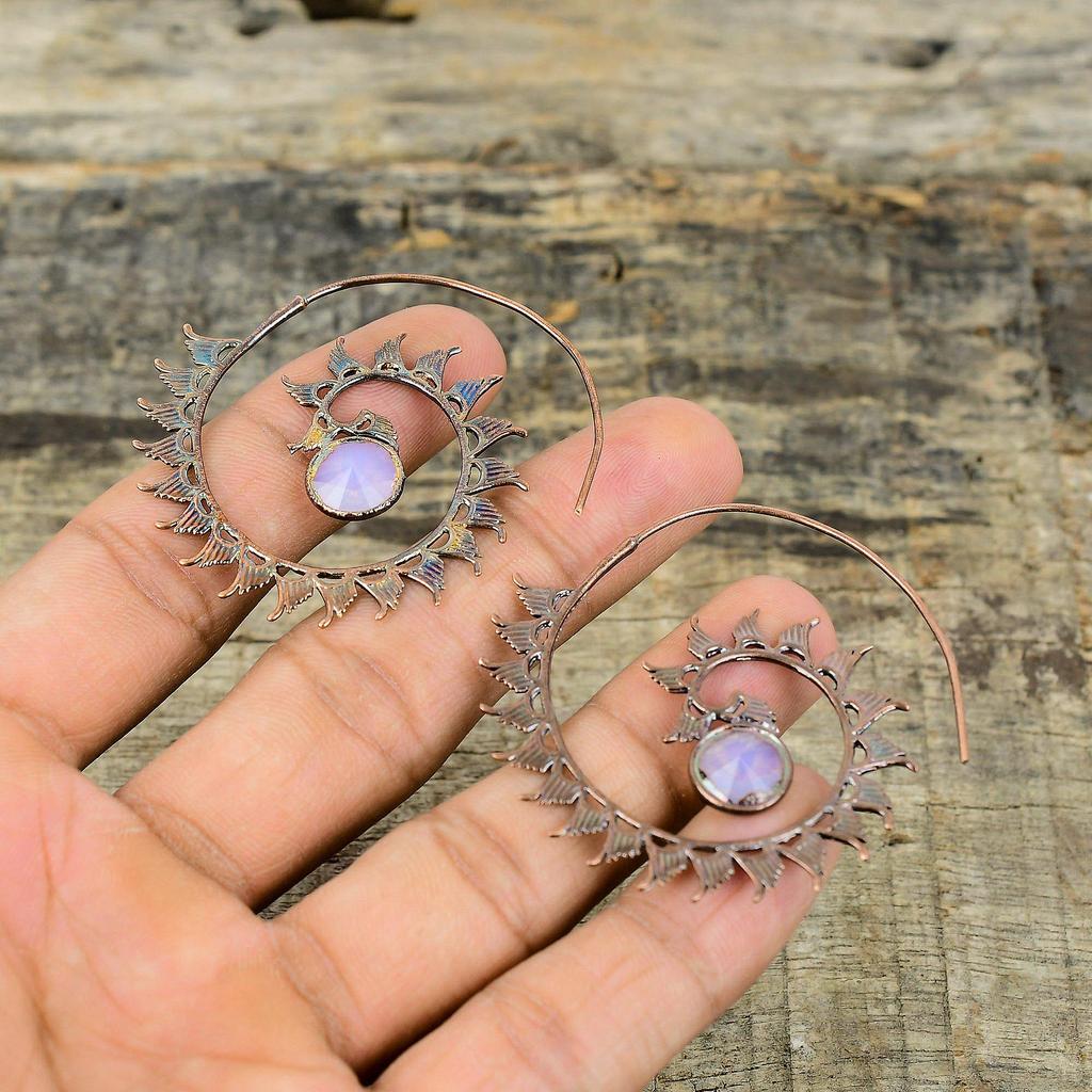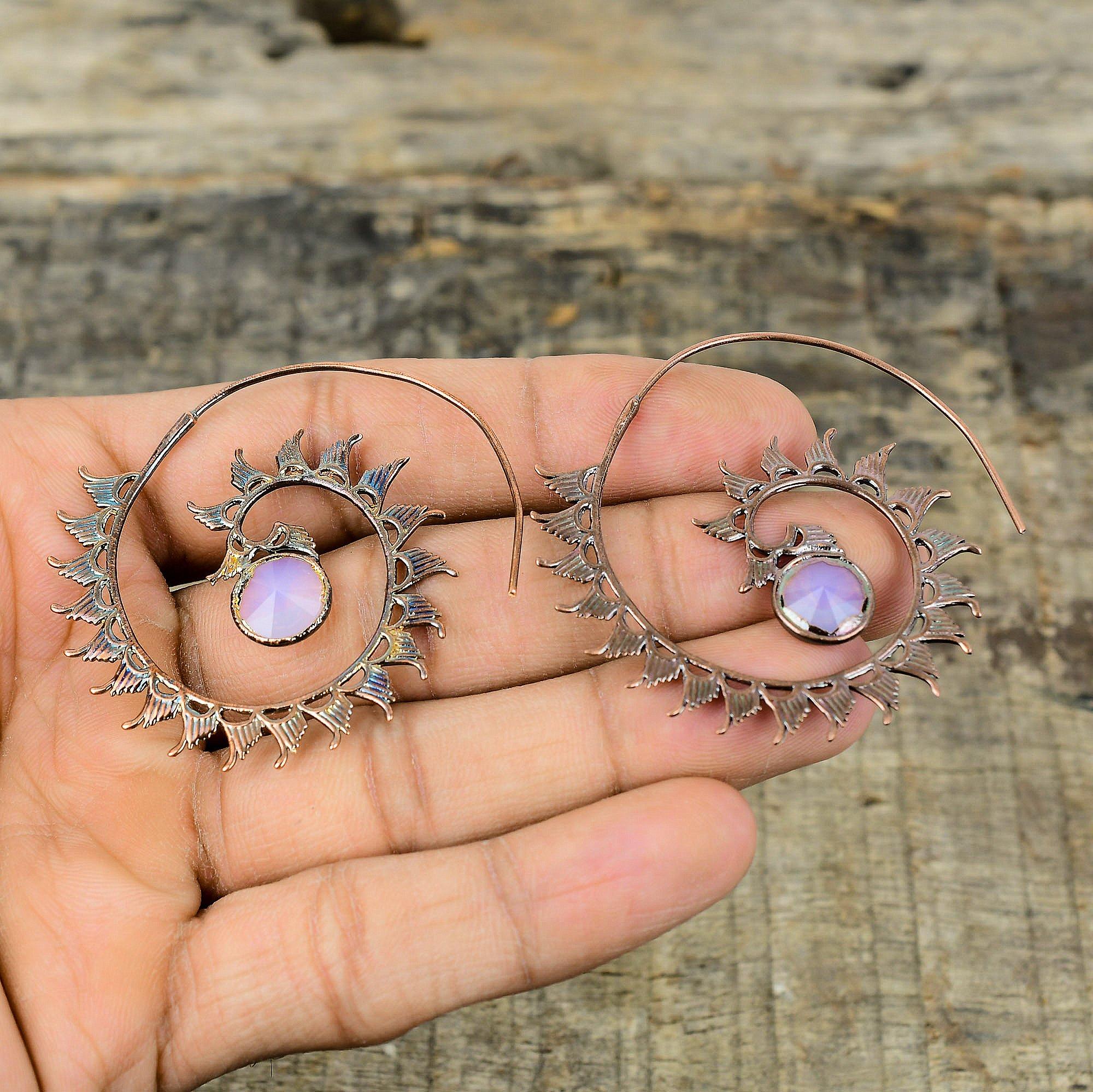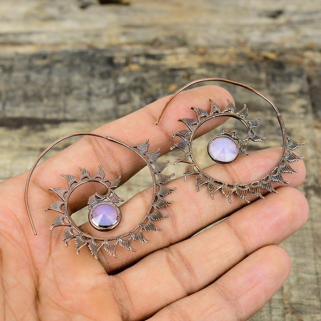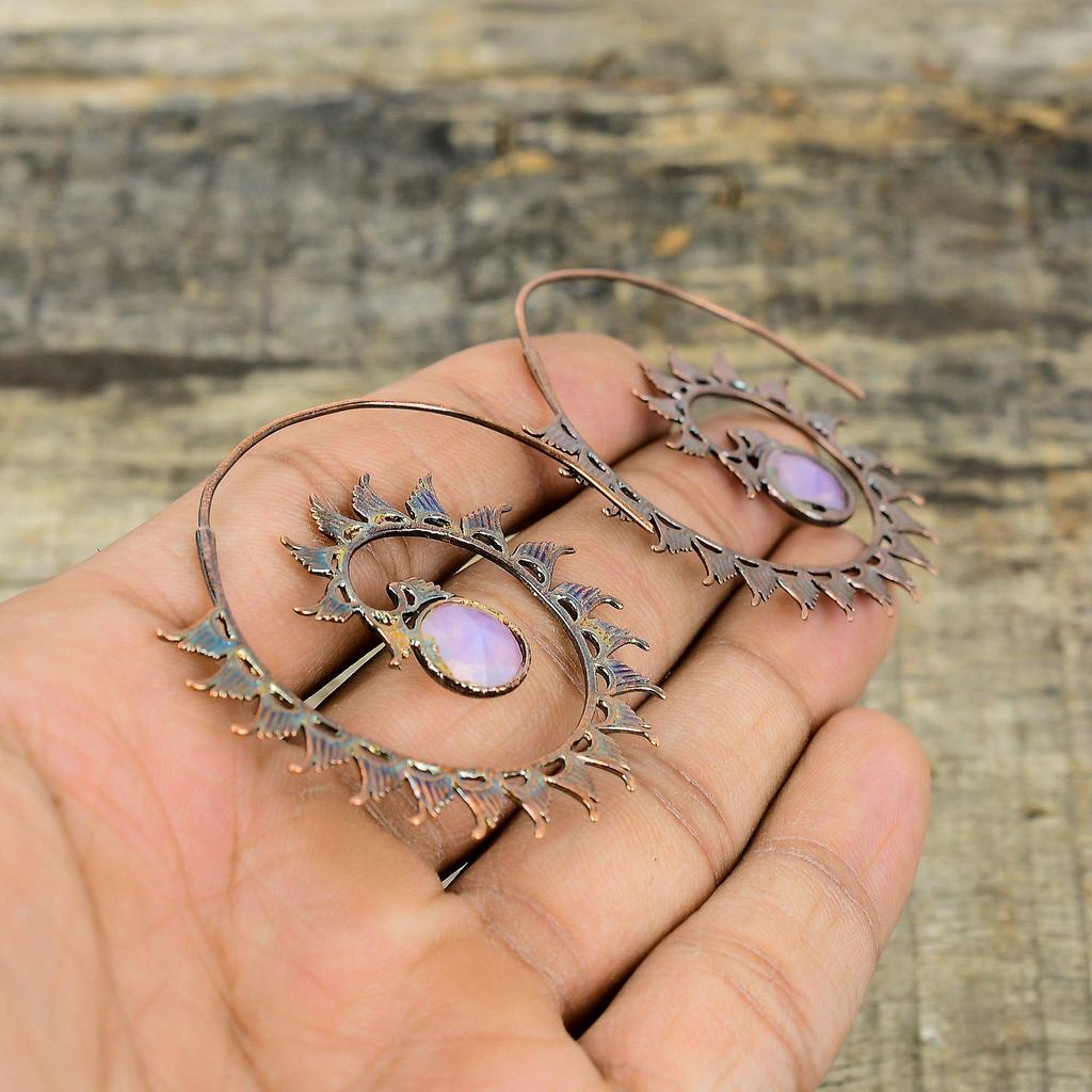 Серьги из розового кварца, медные серьги, полученные гальваническим способом, ювелирные изделия из драгоценных камней, серьги ручной работы, уникальные серьги, ювелирные изделия из гальванической меди, свадебный подарок