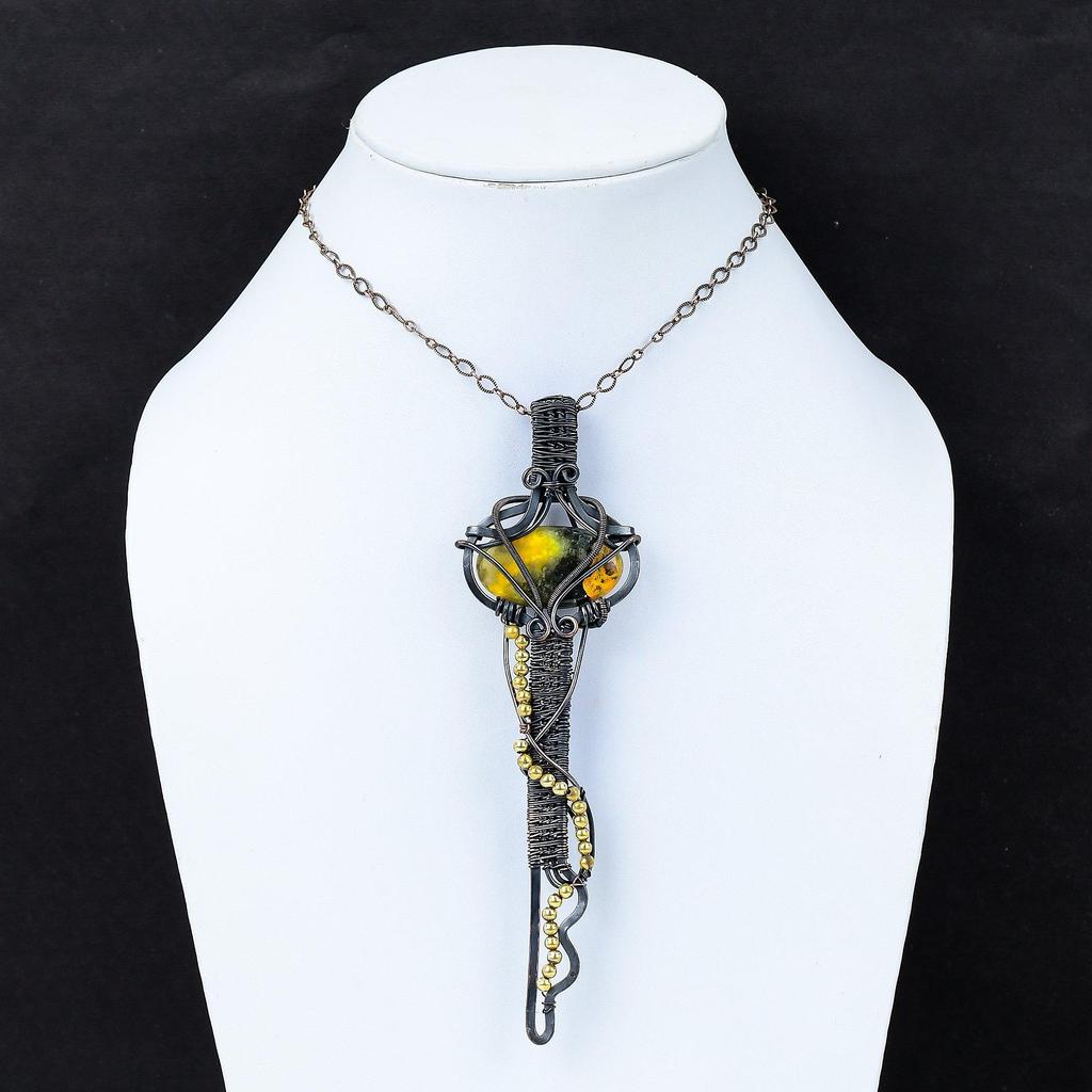 Кулон из яшмы шмеля, кулон, обмотанный медной проволокой, украшения ручной работы, кулон-ключ, кулон из натурального драгоценного камня, медные украшения, подарки на годовщину