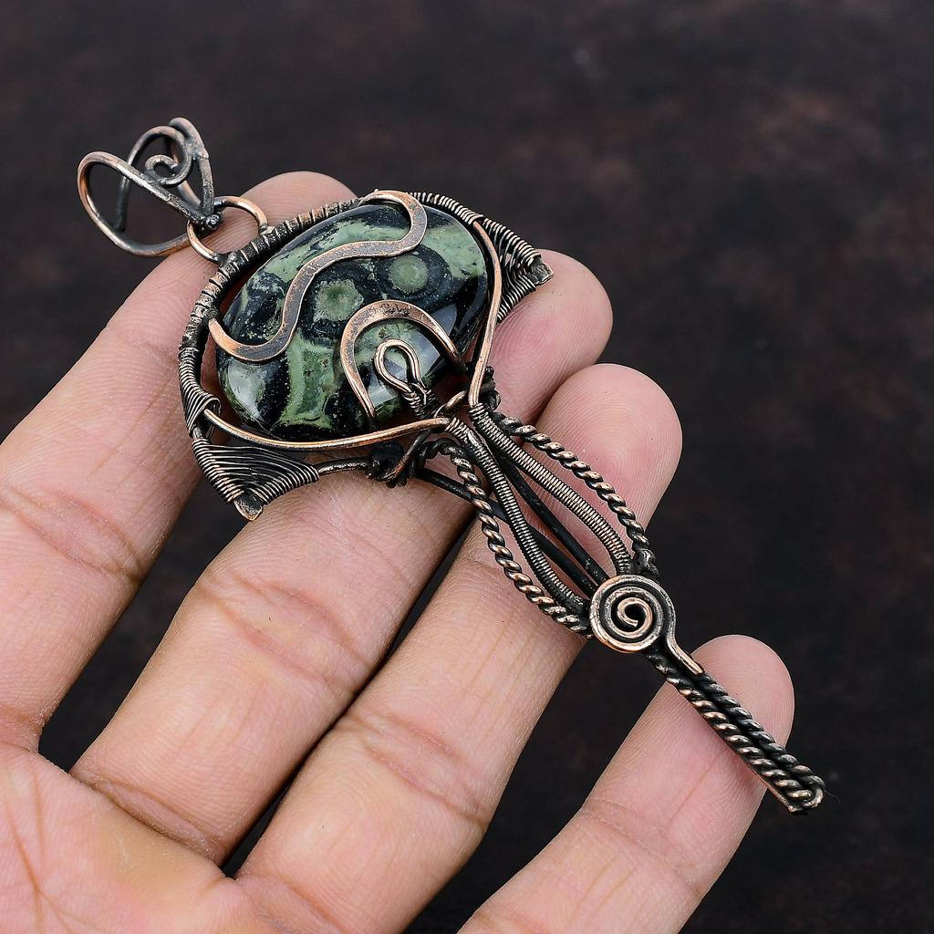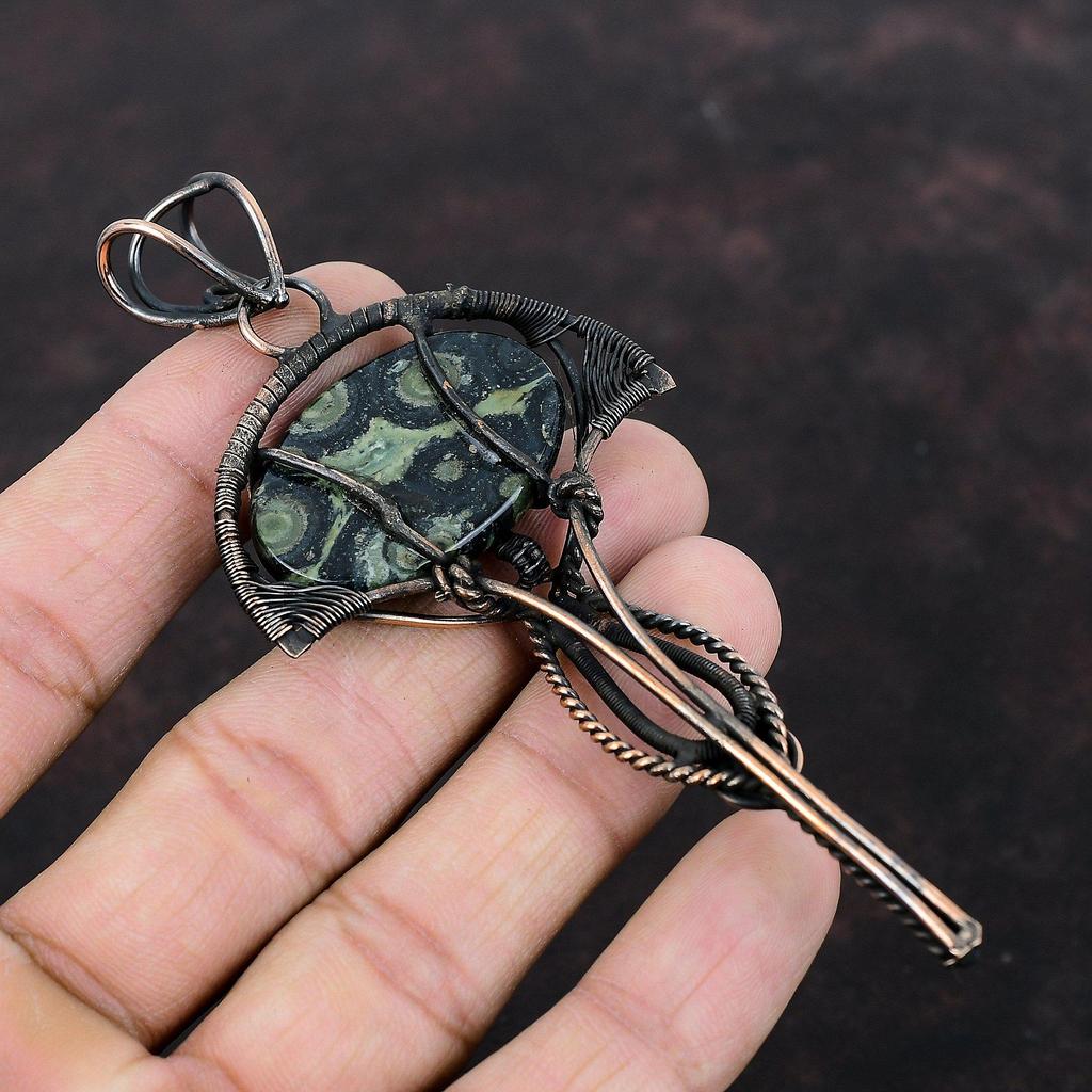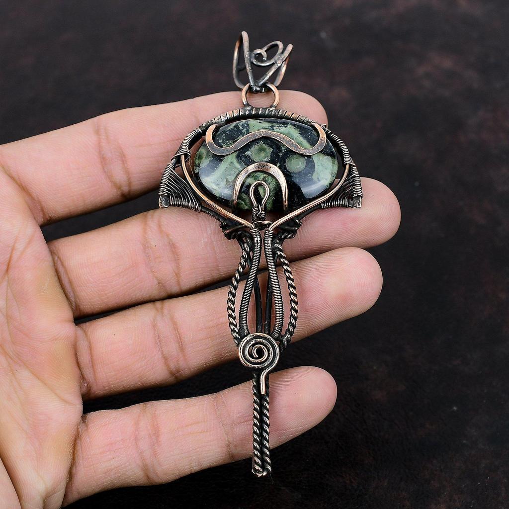 Подвеска из камбабского яшма, обернутая медной проволокой, ручная работа, подвеска с драгоценным камнем, украшение из камбабского яшма, подвеска для подарка, потрясающее медное украшение