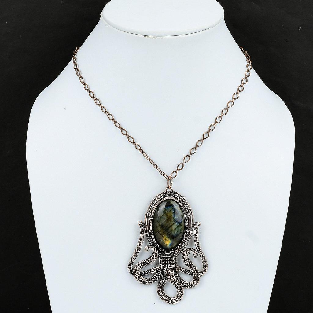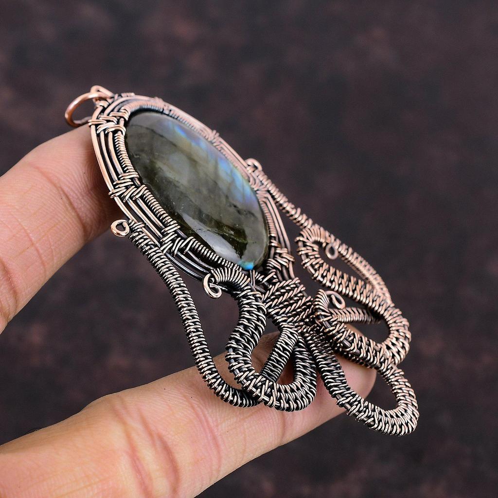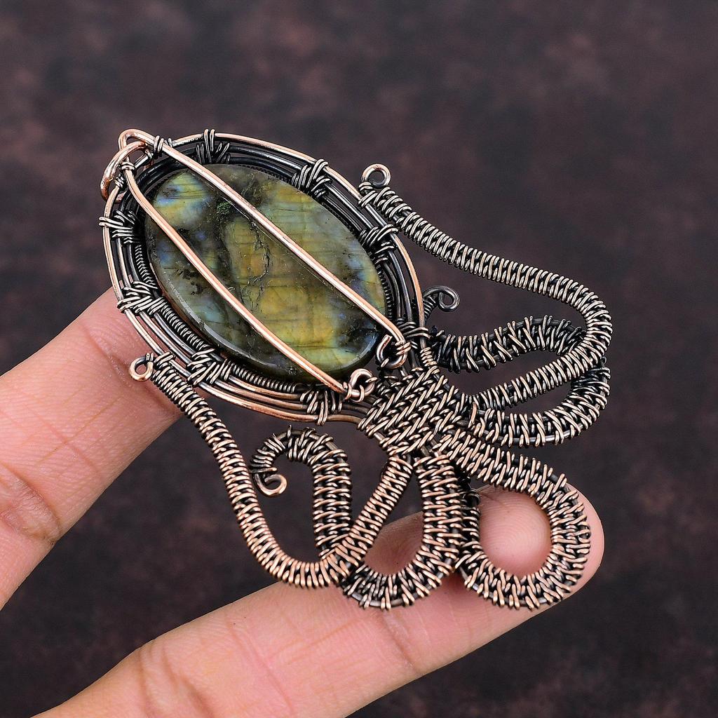 Подвеска из драгоценного камня лабрадорит, подвеска из медной проволоки, подвеска в виде осьминога, ювелирное изделие в виде медной проволоки, подарок для нее, ювелирные изделия из лабрадорита ручной работы
