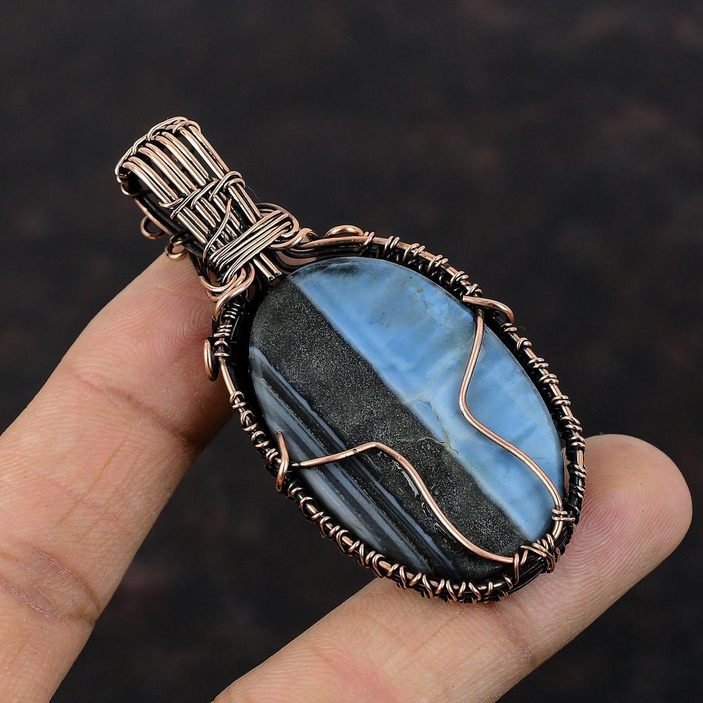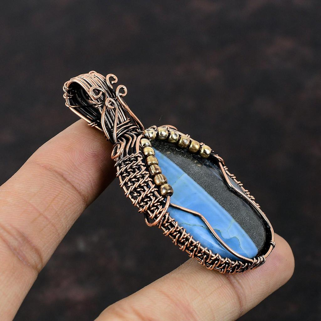 Подвеска Owyhee Blue Opal, подвеска из медной проволоки, уникальная бижутерия ручной работы, оригинальный кулон из драгоценного камня, подарок для нее, ювелирные изделия из медной проволоки