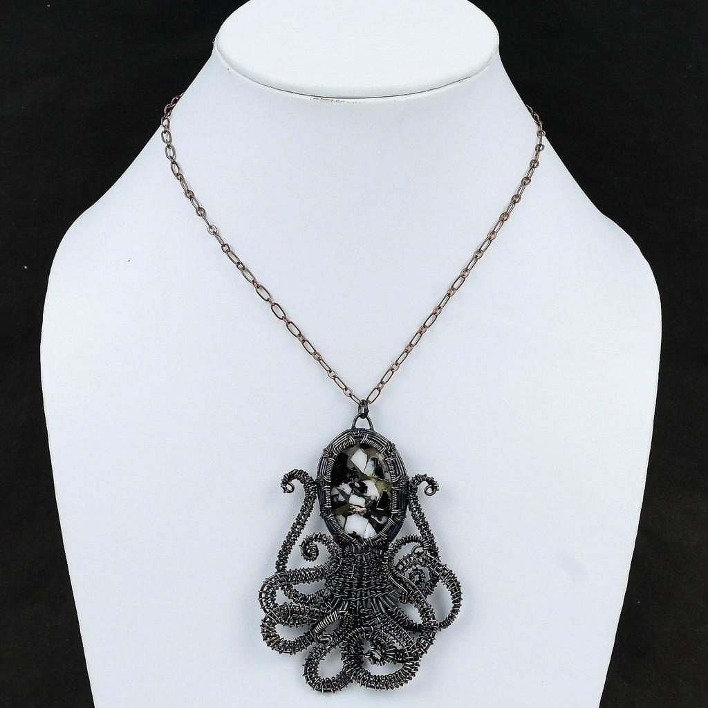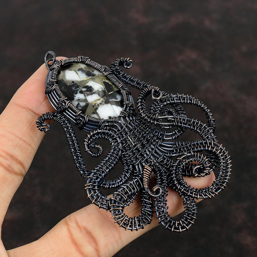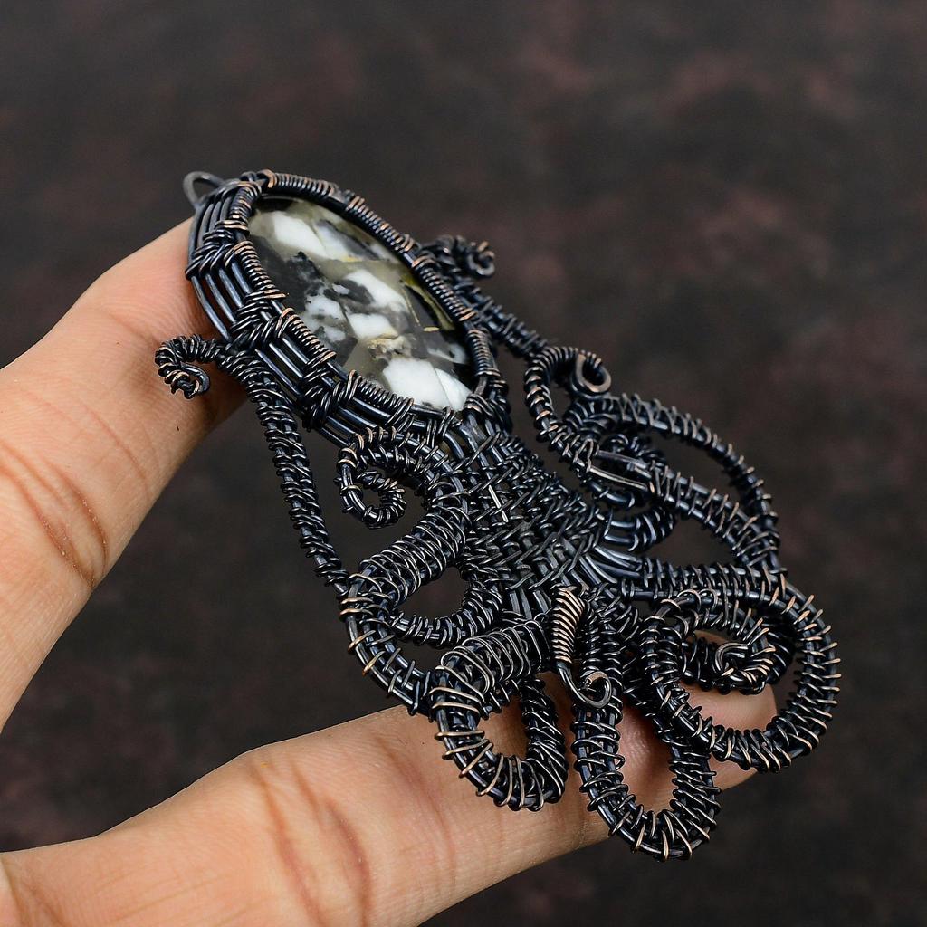 Медный черно-белый бирюзовый кулон, медная проволока, обернутая кулоном, драгоценный камень, медные украшения, изящный кулон ручной работы, кулон в виде осьминога для подарка
