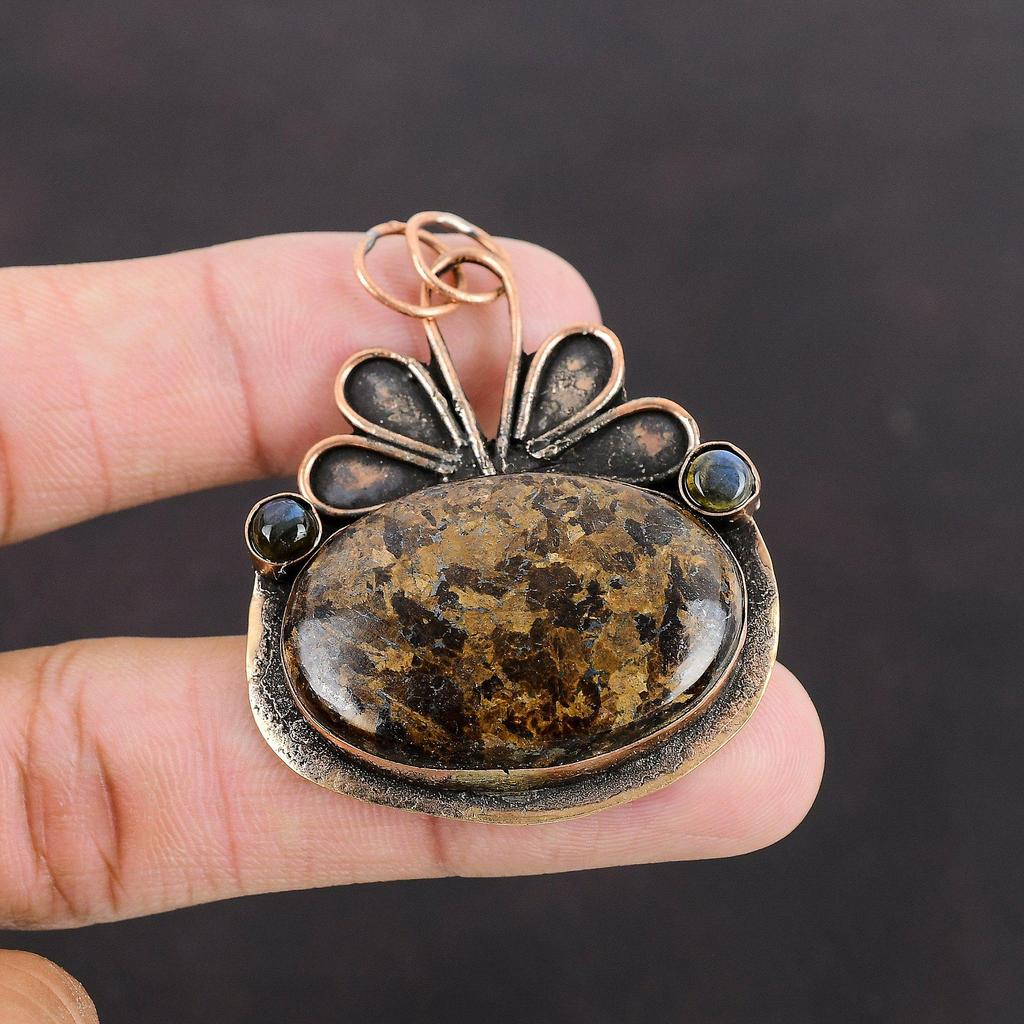 Подвеска из бронзита, подвеска из лабрадорита, медная подвеска, эффектная подвеска, оригинальная подвеска из драгоценного камня, медные украшения ручной работы, подарок на помолвку