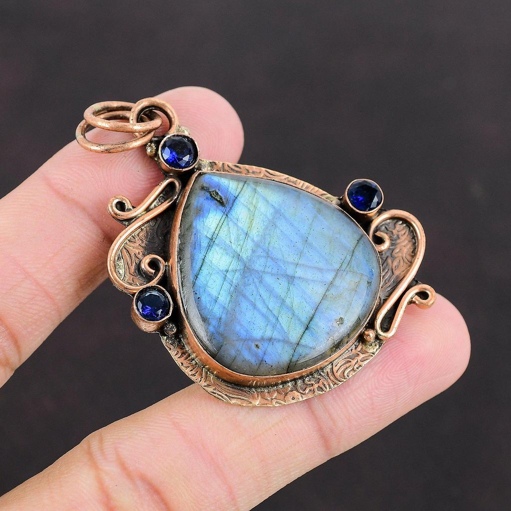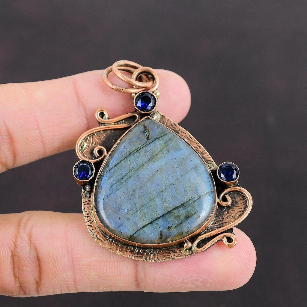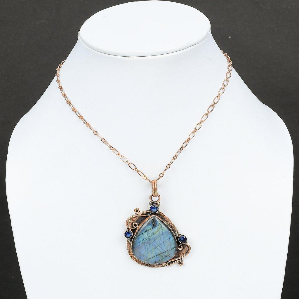 Подвеска из лабрадорита, танзанитовый кварцевый кулон, медная подвеска, ювелирные изделия ручной работы, подвеска из настоящего драгоценного камня для подарка, уникальные ювелирные изделия из меди