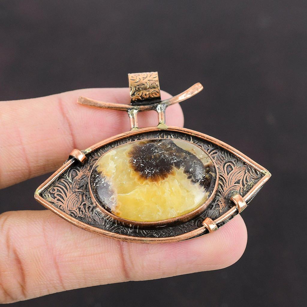 Септарианский кулон, медный кулон, подлинный драгоценный камень, кулон для особого случая, кулон ручной работы, септарианский медный ювелирный кулон для женщин