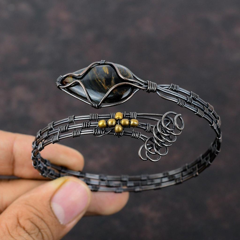 Pietersite браслет из медной проволоки, обернутый драгоценными камнями, регулируемый браслет-манжета, браслет ручной работы, браслет-манжета из медной проволоки, свадебный подарок — купить товар онлайн с бесплатной доставкой по всему миру!