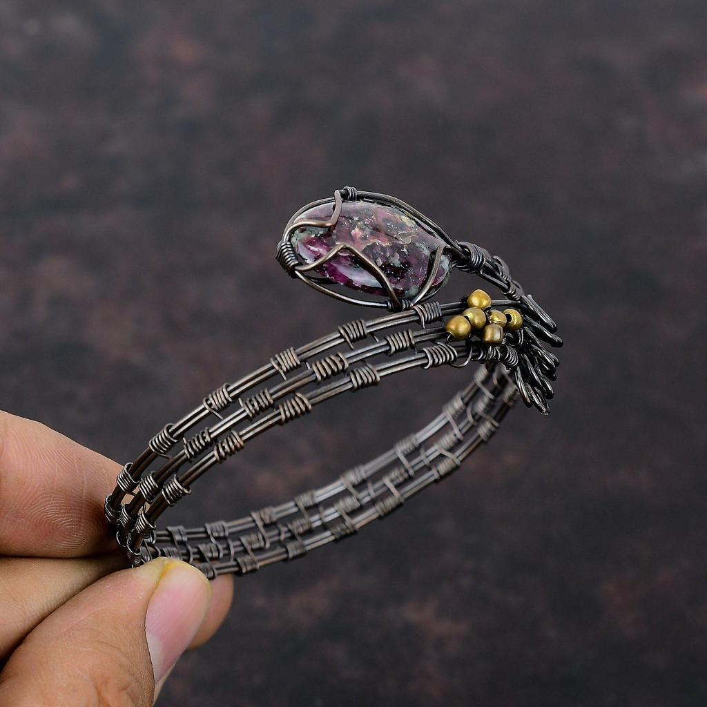 Браслет-манжета из эвдиалита, обмотанный медной проволокой, регулируемый браслет-манжета ручной работы, браслет из драгоценных камней, обмотанный медной проволокой, ювелирное изделие, подарок для мамы