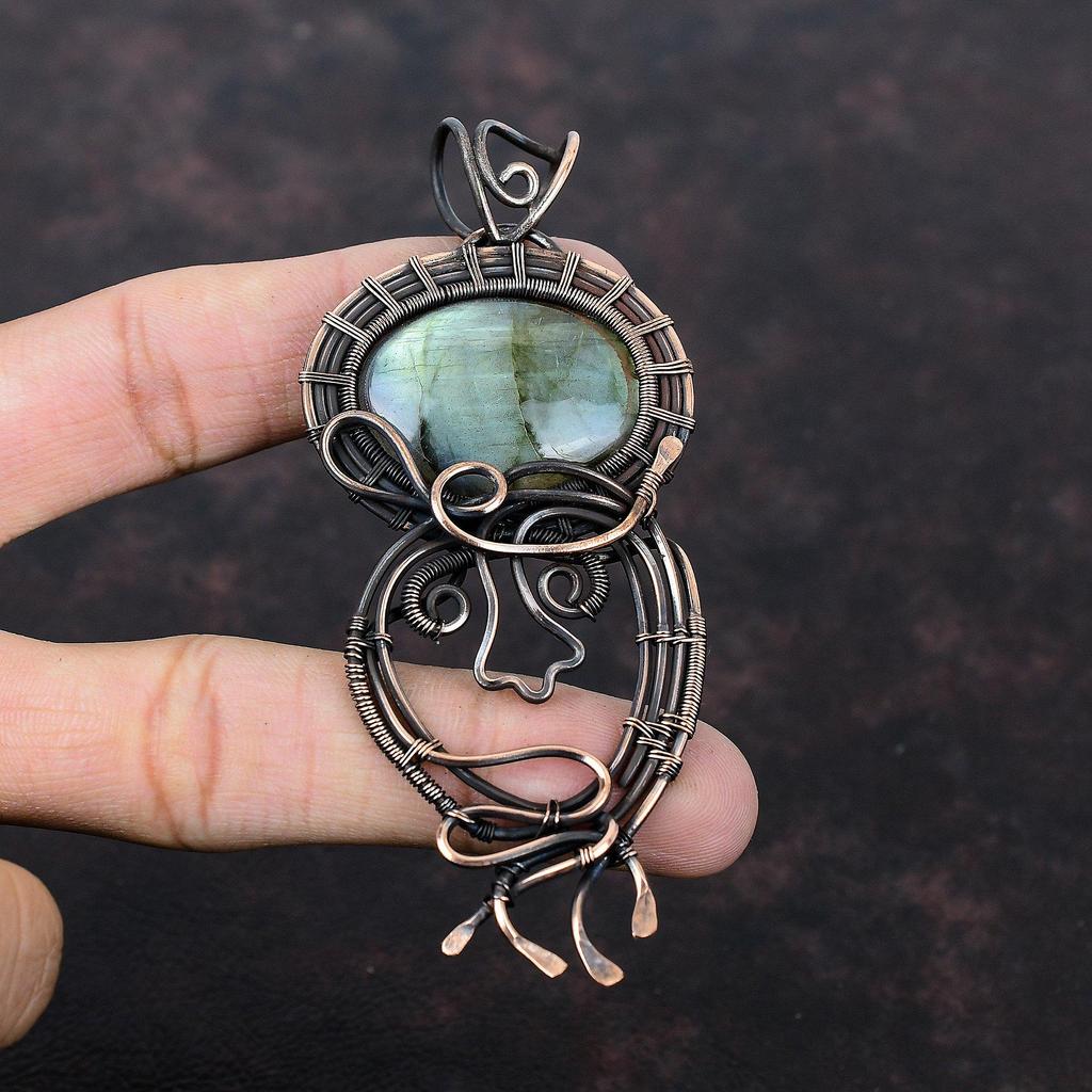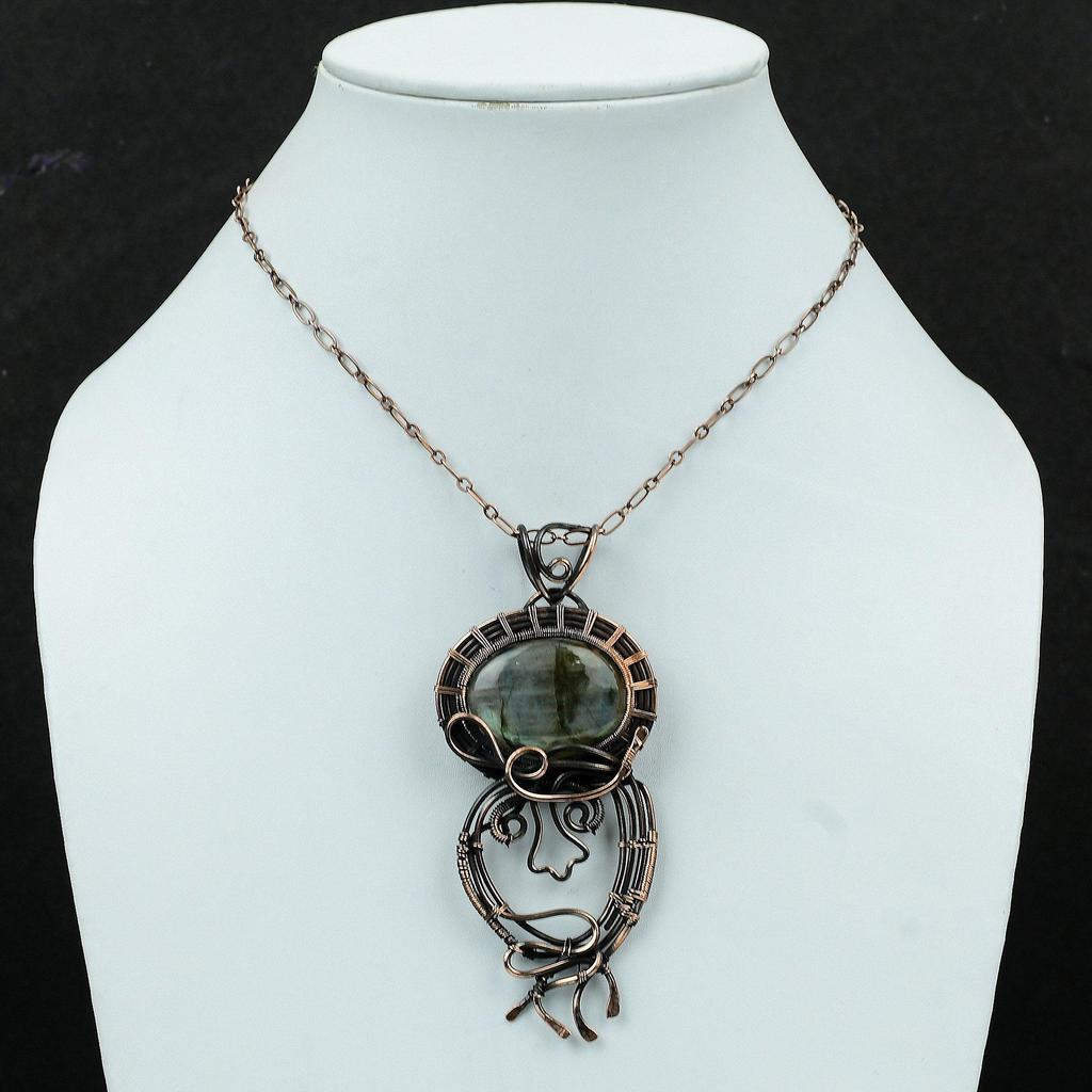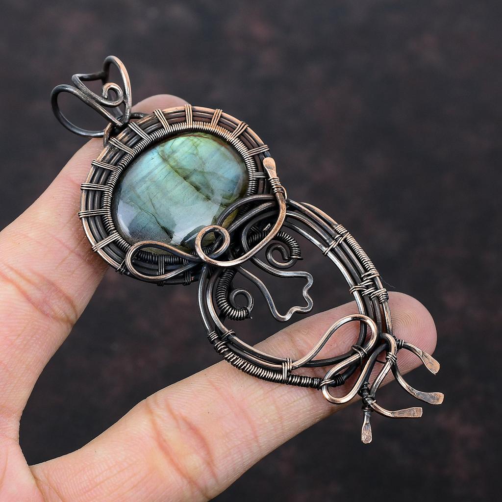 Подвеска из лабрадорита, подвеска из медной проволоки, ювелирное изделие ручной работы, подвеска из драгоценного камня, подвеска из камня, соответствующего рождению, подарок для нее, ювелирное изделие из медной проволоки