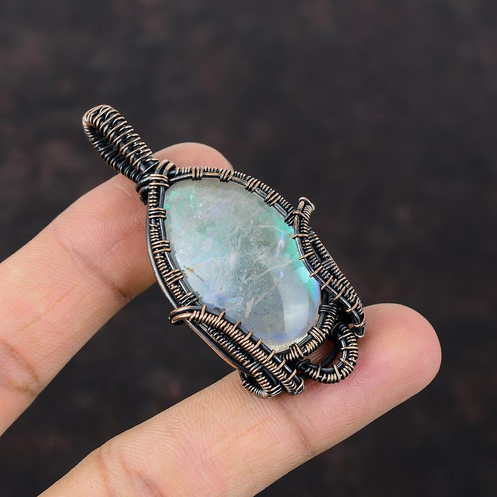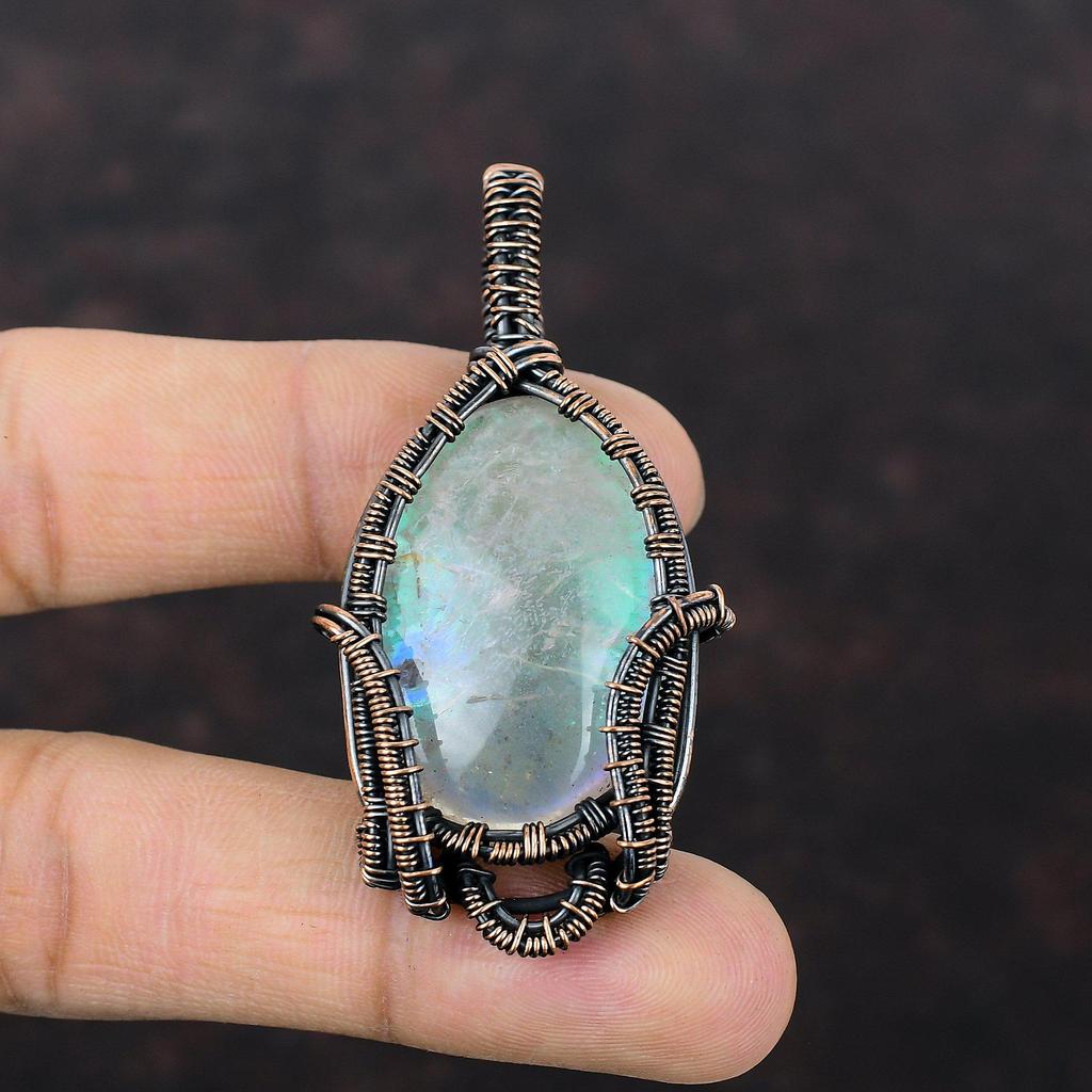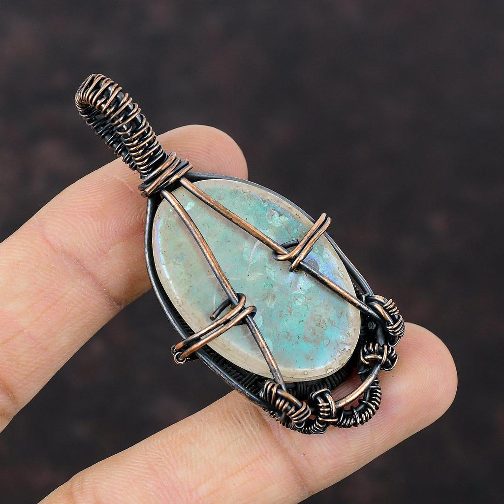 Кулон Радужный Мистический Опал Кулон, обернутый медной проволокой Кулон ручной работы Украшения из медной проволоки Кулон из натурального драгоценного камня Подарок на годовщину