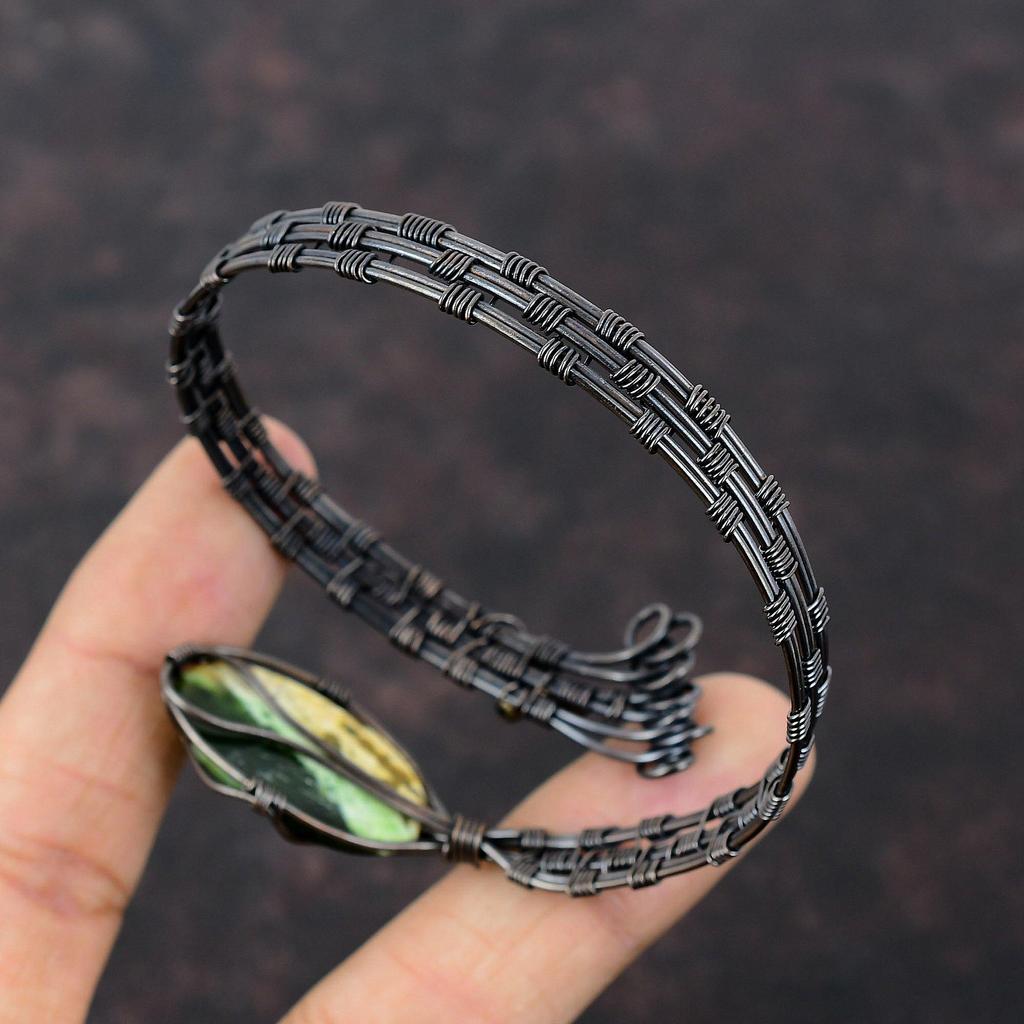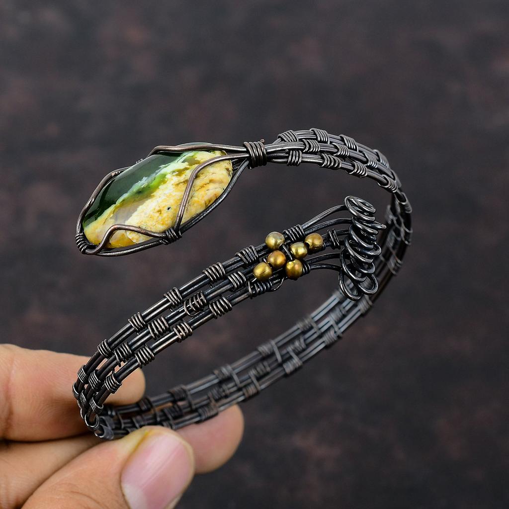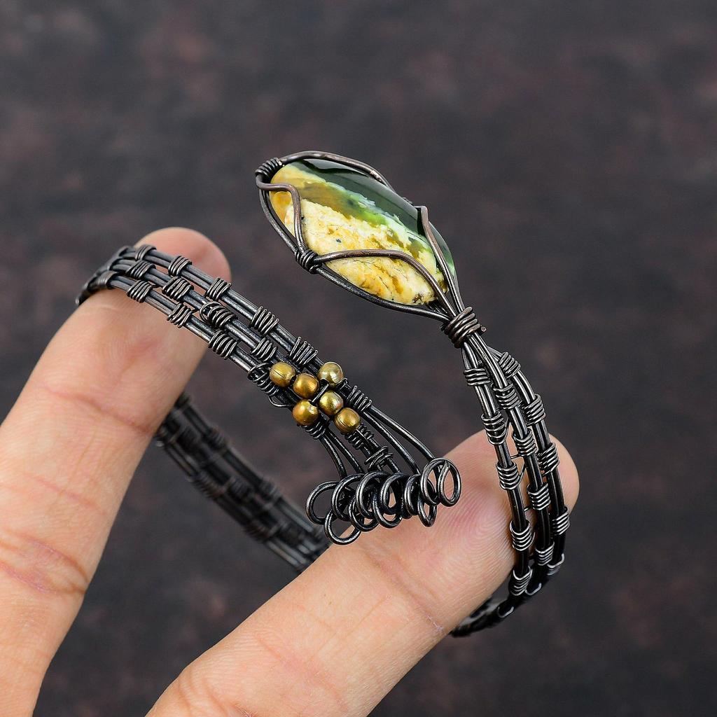 Браслет из австралийского хрома и халцедона с драгоценными камнями, браслет-манжета из медной проволоки, манжета ручной работы из меди, подарок для него, регулируемые браслеты