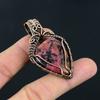 Подвеска из розового турмалина, обернутая медной проволокой, подвеска ручной работы в этническом стиле, женская подвеска, украшение из медной проволоки, подвеска с драгоценным камнем для подарка
