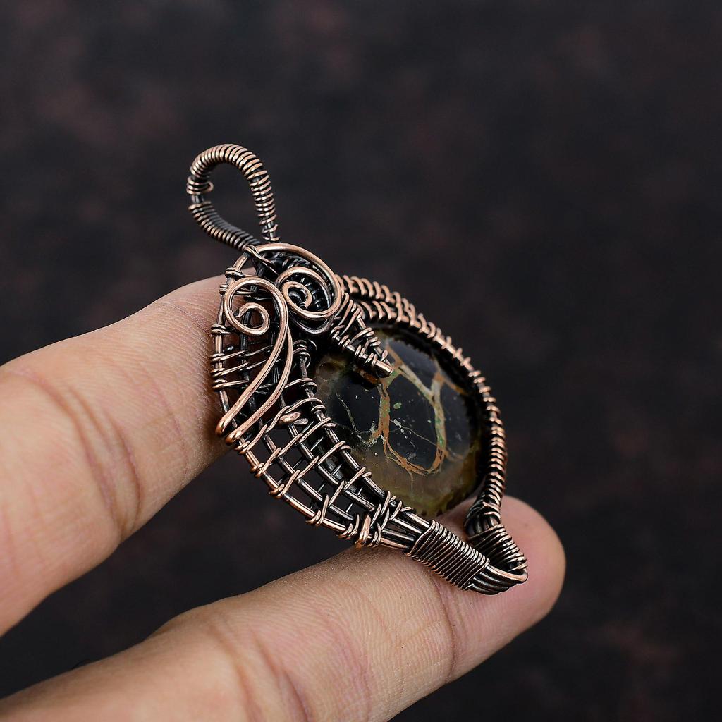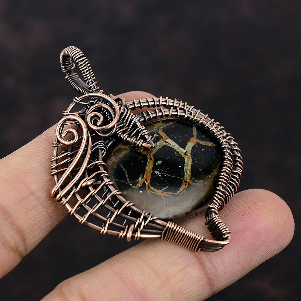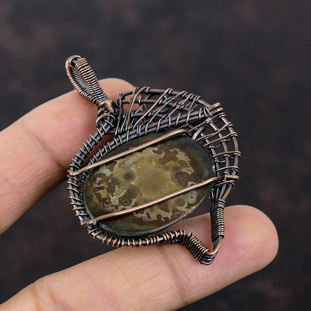 Подвеска из окаменелости в виде трещины в марокканской грязи, подвеска из медной проволоки, ювелирное изделие ручной работы, изящная подвеска из драгоценных камней, ювелирное изделие из медной проволоки, свадебный подарок