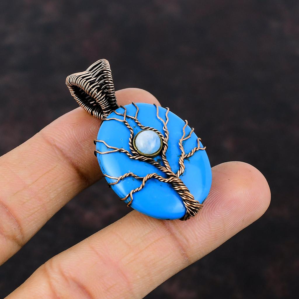 Древо жизни Спящая красавица Бирюзовый кулон Медная проволока обернутый драгоценный камень кулон Медная проволока ювелирные изделия ручной работы Радужный лунный камень кулон