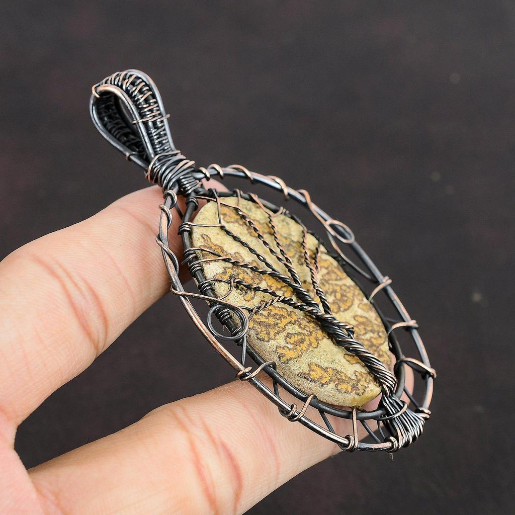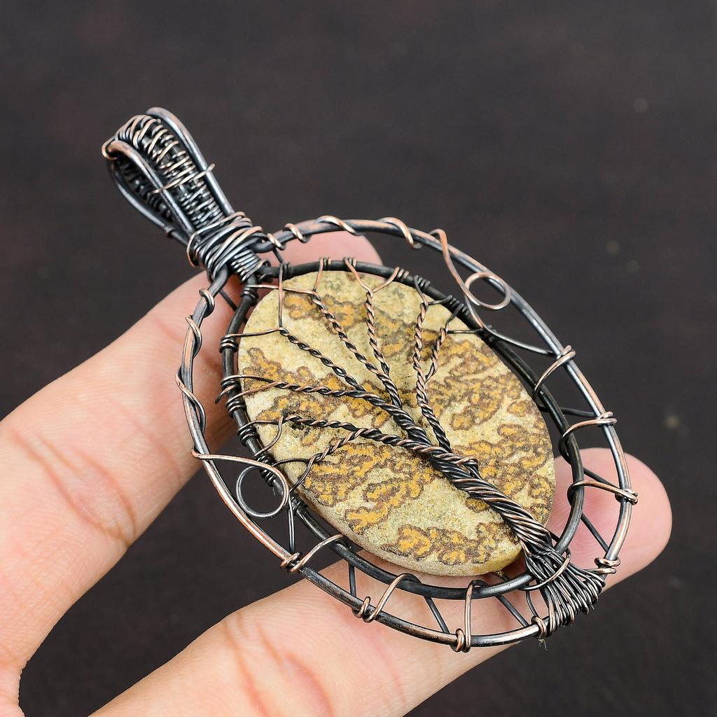 Подвеска Древо Жизни Псиломелан Дендрит Подвеска, оплетенная медной проволокой Ручная работа Ювелирное изделие Подвеска с драгоценным камнем Подарок для нее Ювелирные изделия из медной проволоки