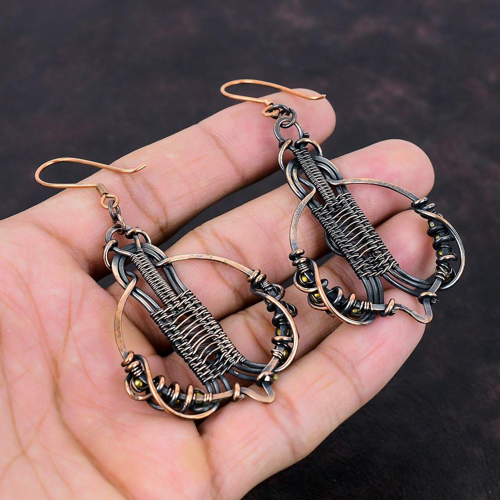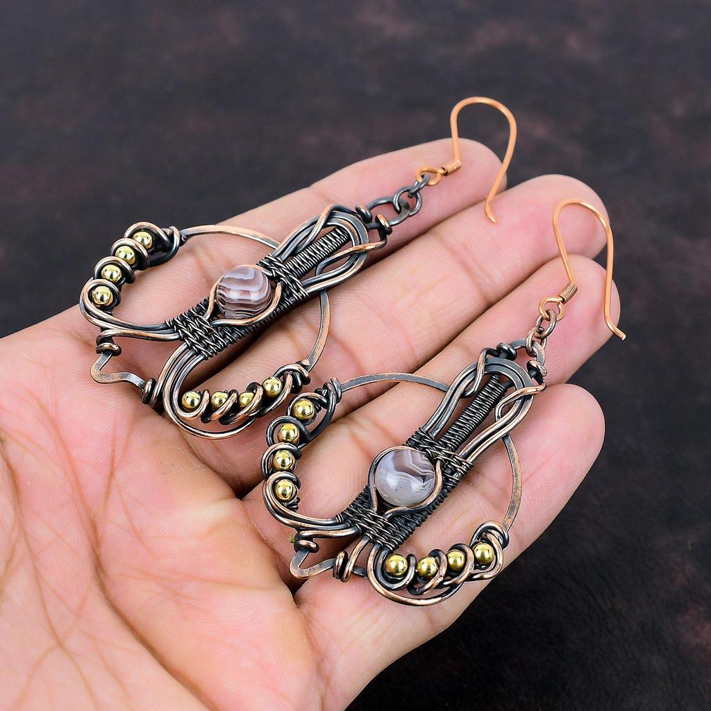 Серьги из ботсванского агата, серьги из медной проволоки с драгоценными камнями, медные украшения, серьги ручной работы, подарок на годовщину, потрясающие серьги, проволочные украшения