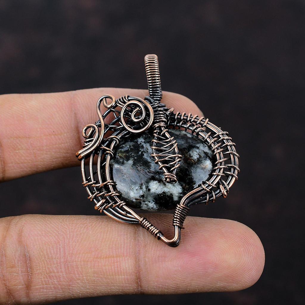 Подвеска из астрофиллита, обернутая медной проволокой, подвеска из драгоценного камня, медные украшения, подвеска в стиле бохо, ручная работа, обернутая проволокой, подарок для друга — купить товар онлайн с бесплатной доставкой по всему миру!
