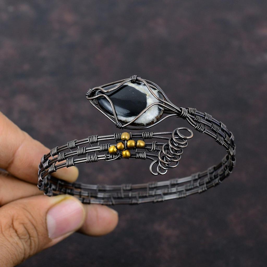 Марокканская грязь трещины окаменелость манжета браслет медная проволока обмотка регулируемый браслет ручной работы медная проволока обмотка ювелирные изделия драгоценный камень браслет для подарка