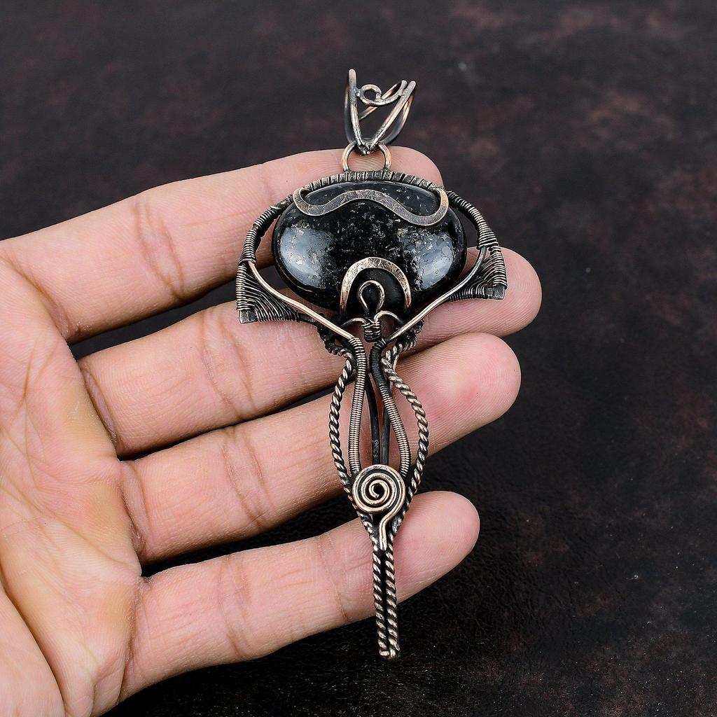 Подвеска из нууммита, медная проволока, кулон, драгоценный камень, медные украшения, кулон ручной работы, ювелирные изделия из проволочной обмотки, подарок на годовщину, кулон с камнем на день рождения