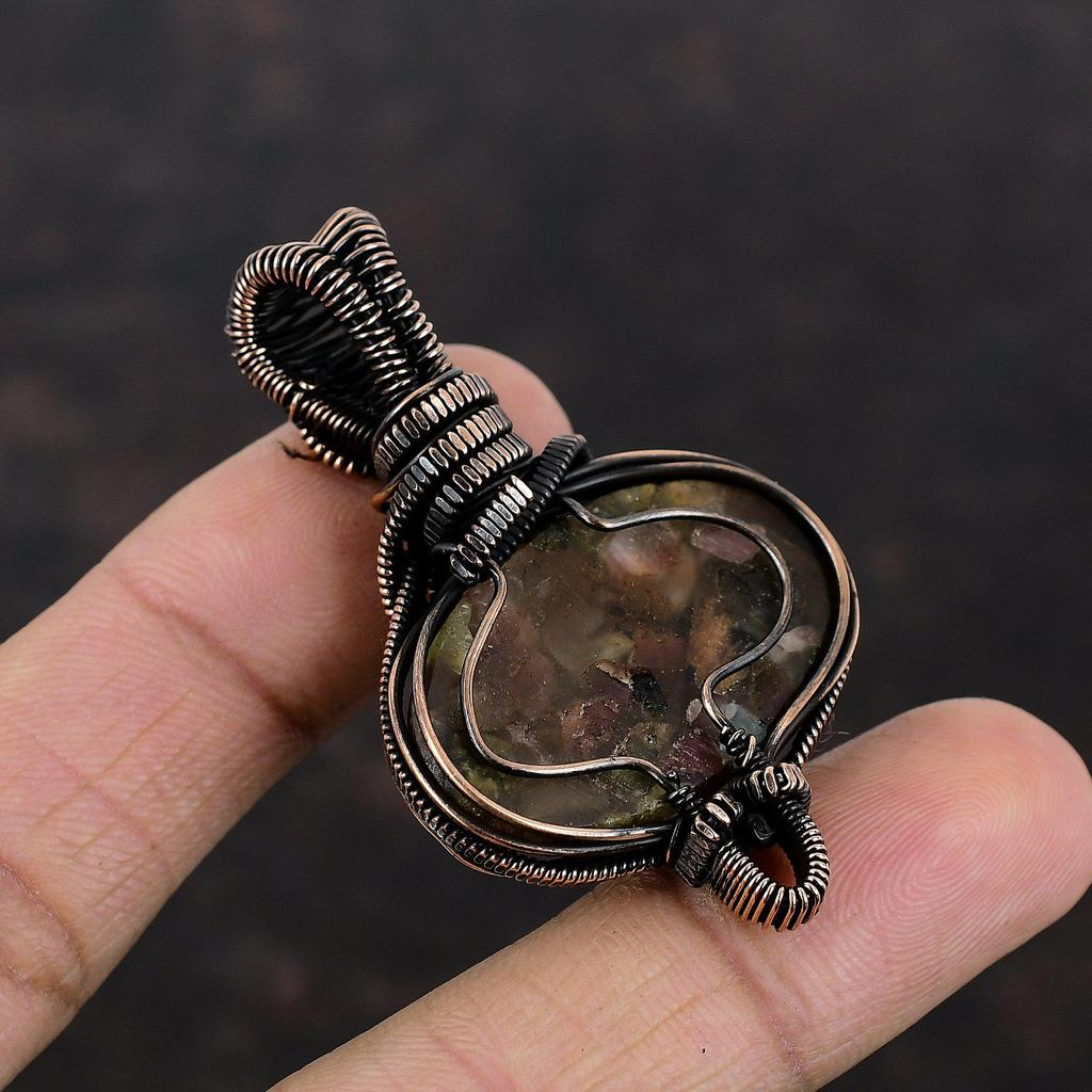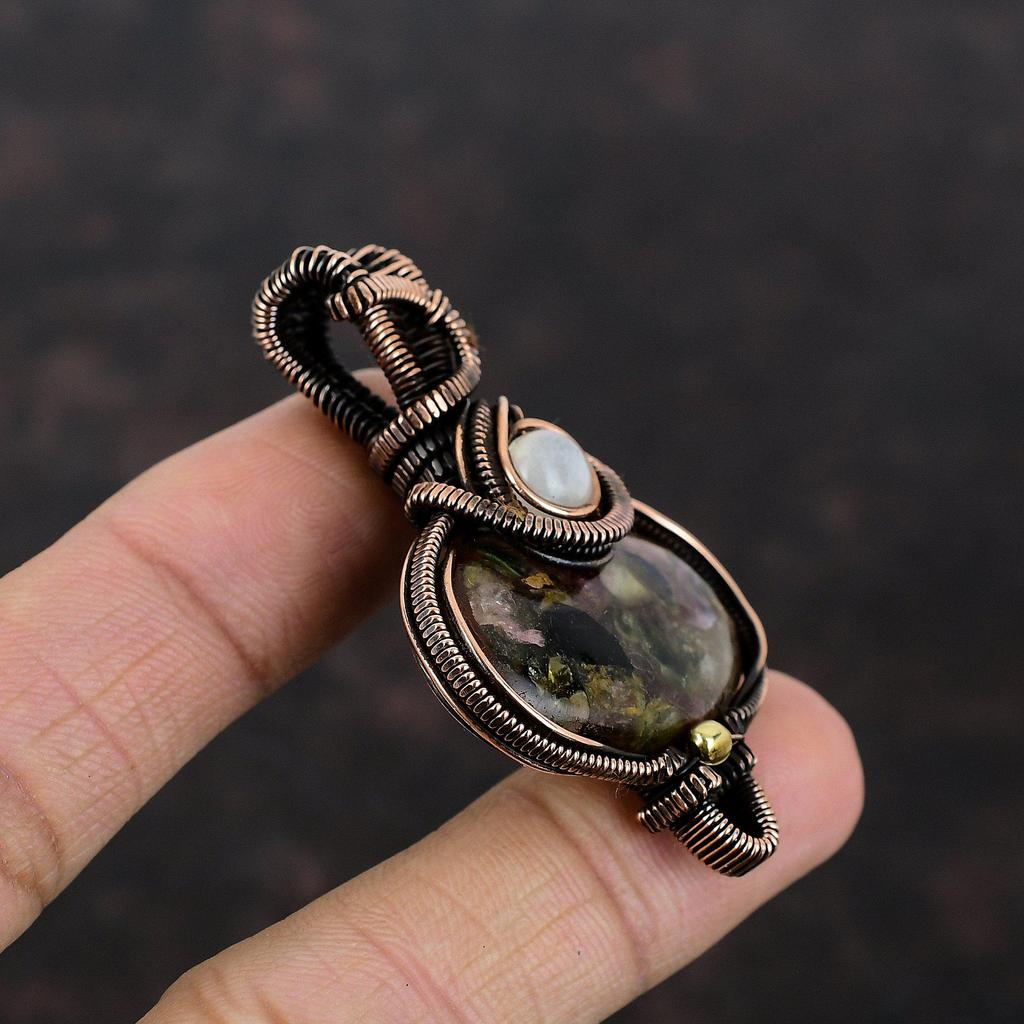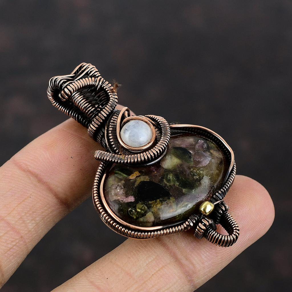 Подвеска с арбузным турмалином, подвеска из медной проволоки, подвеска с радужным лунным камнем, медное ювелирное украшение в подарок для матери, подвеска ручной работы