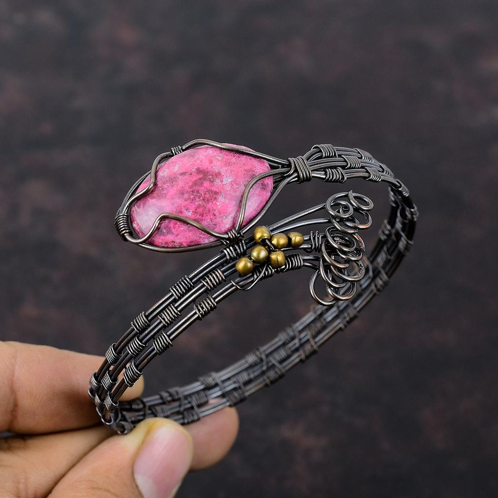 Браслет-манжета из драгоценных камней Тулит, браслет-манжета из медной проволоки, регулируемый браслет, ювелирные изделия из медной проволоки Тулит, подарок для нее, браслет ручной работы