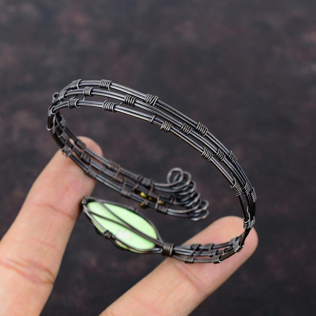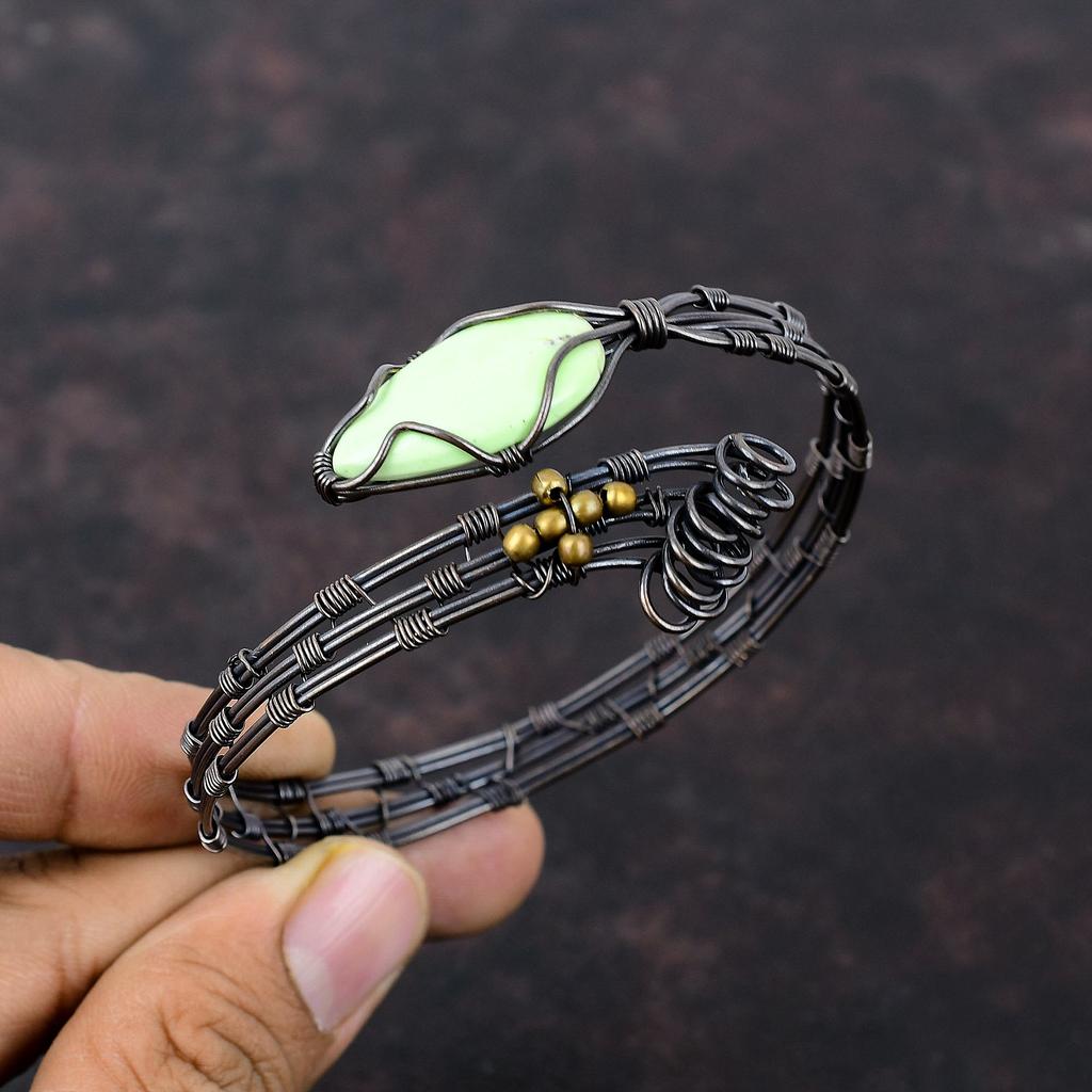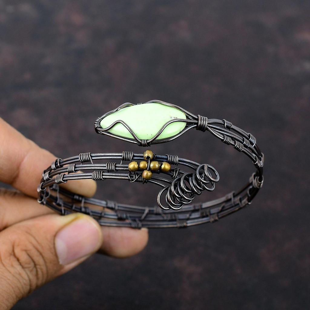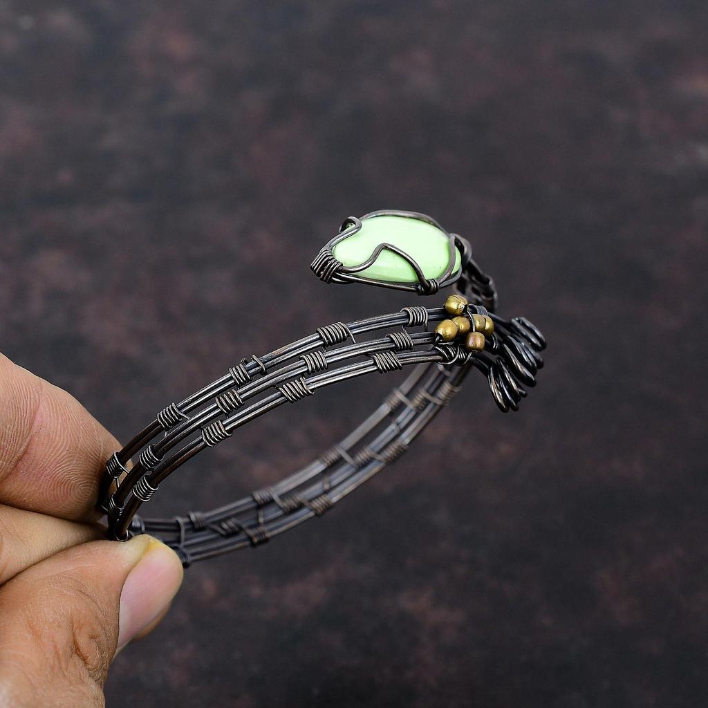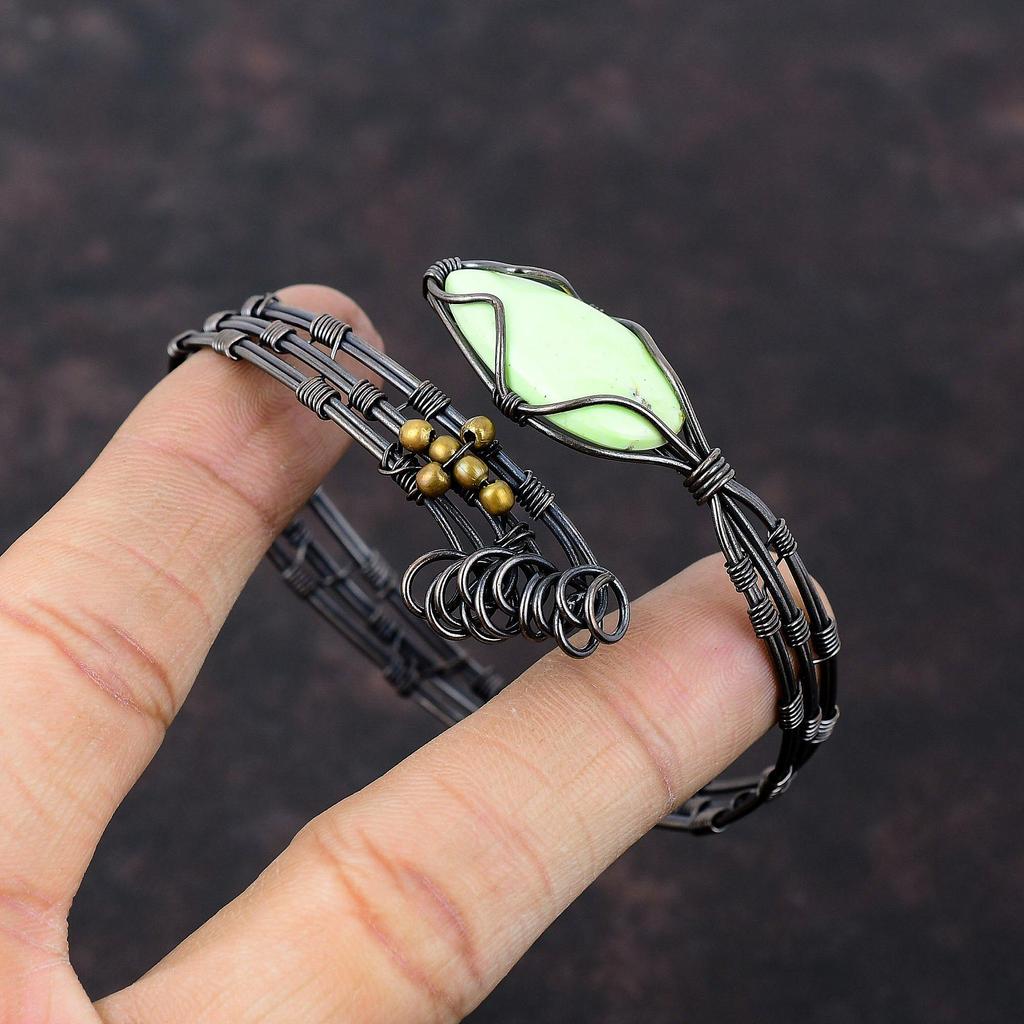 Браслет-манжета из лимонного хризопраза, браслет из медной проволоки с драгоценными камнями, регулируемый браслет-манжета, ювелирные изделия ручной работы для подарка, ювелирные изделия из медной проволоки