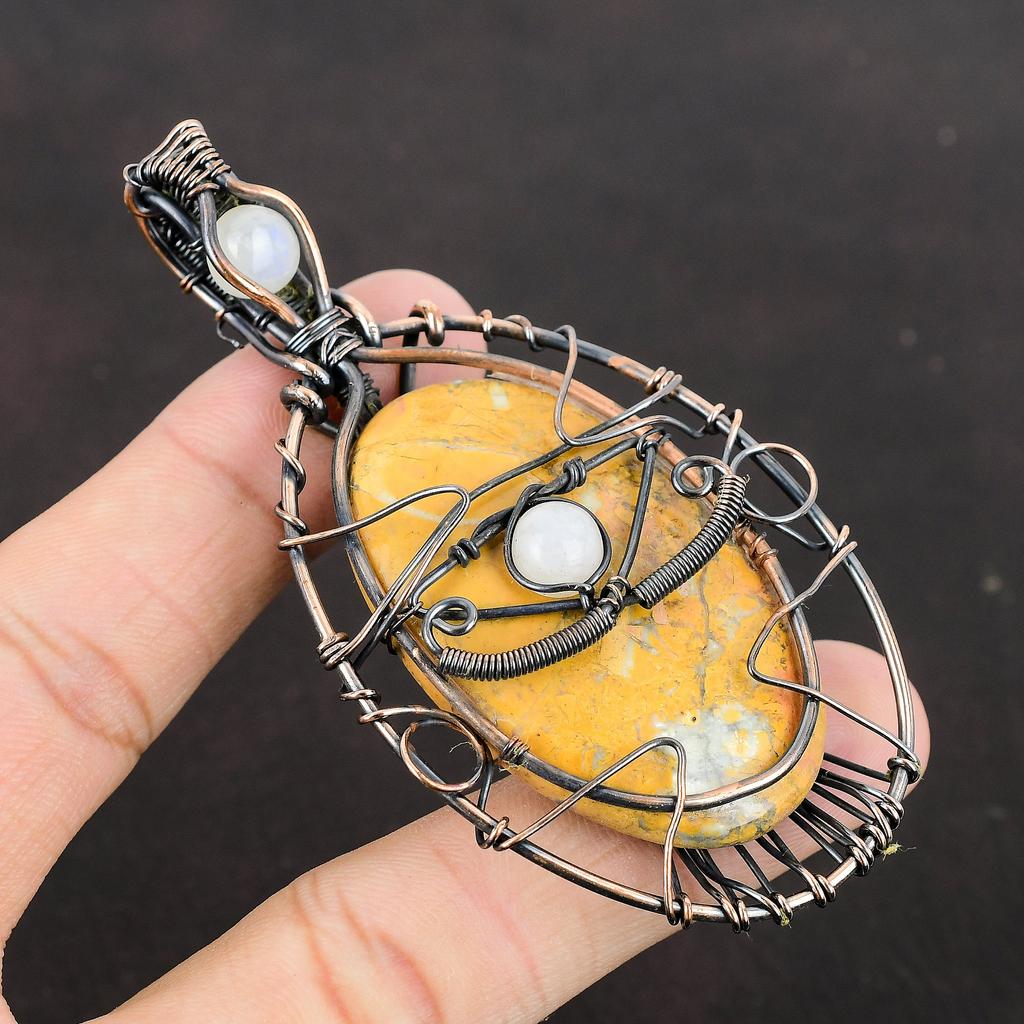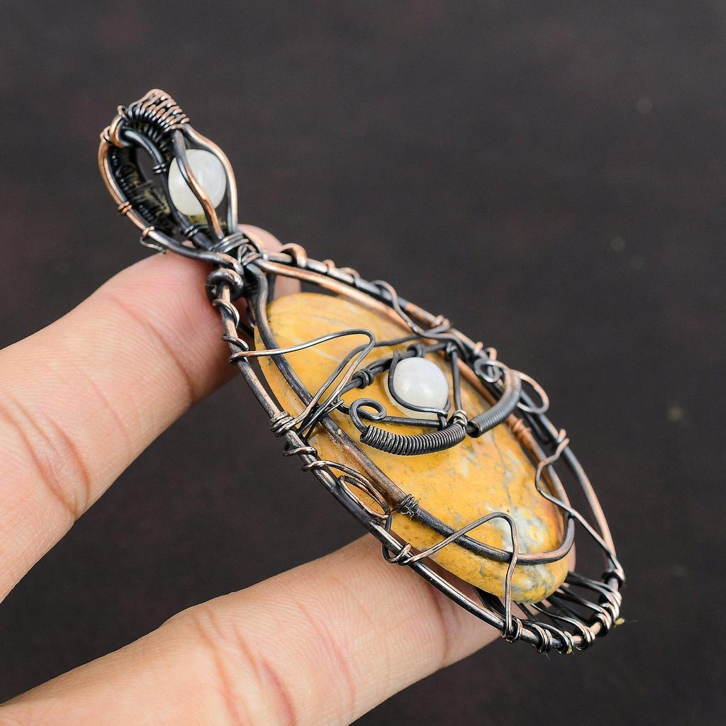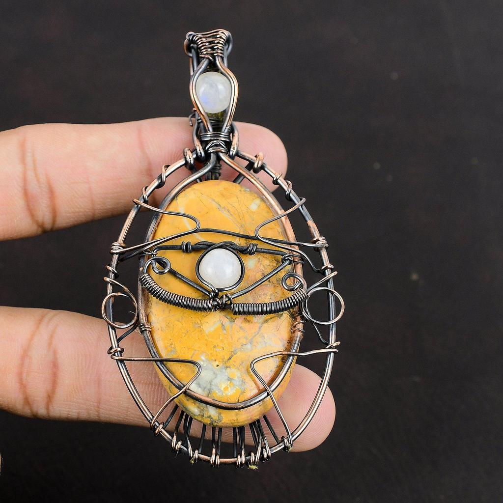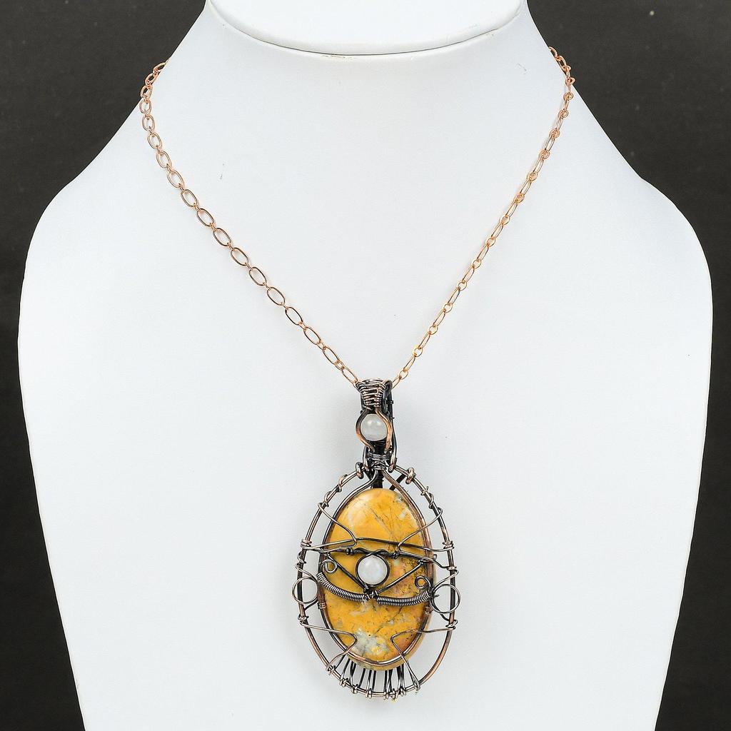 Кулон из яшмы Малигано «Сглаз» с медью Кулон, оплетенный медной проволокой Кулон с драгоценным камнем Ювелирное изделие с медным дизайном Подарок для мамы Кулон с лунным камнем