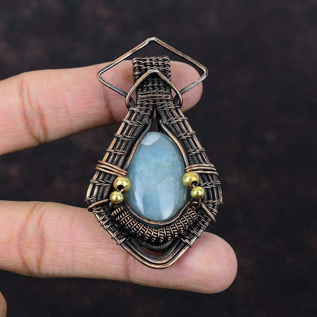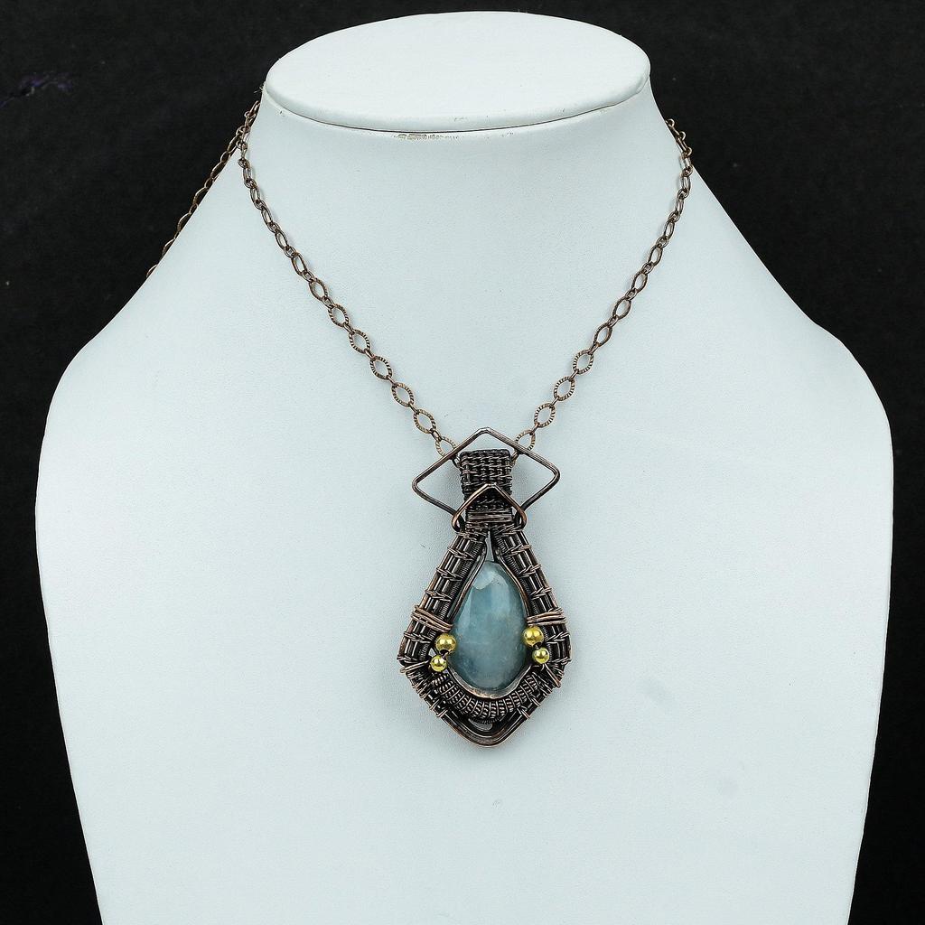 Подвеска Аквамарин Подвеска, обернутая медной проволокой Подвеска ручной работы Медные украшения Подвеска с драгоценным камнем Подвеска Аквамарин, обернутая проволокой Украшения Подарок для него
