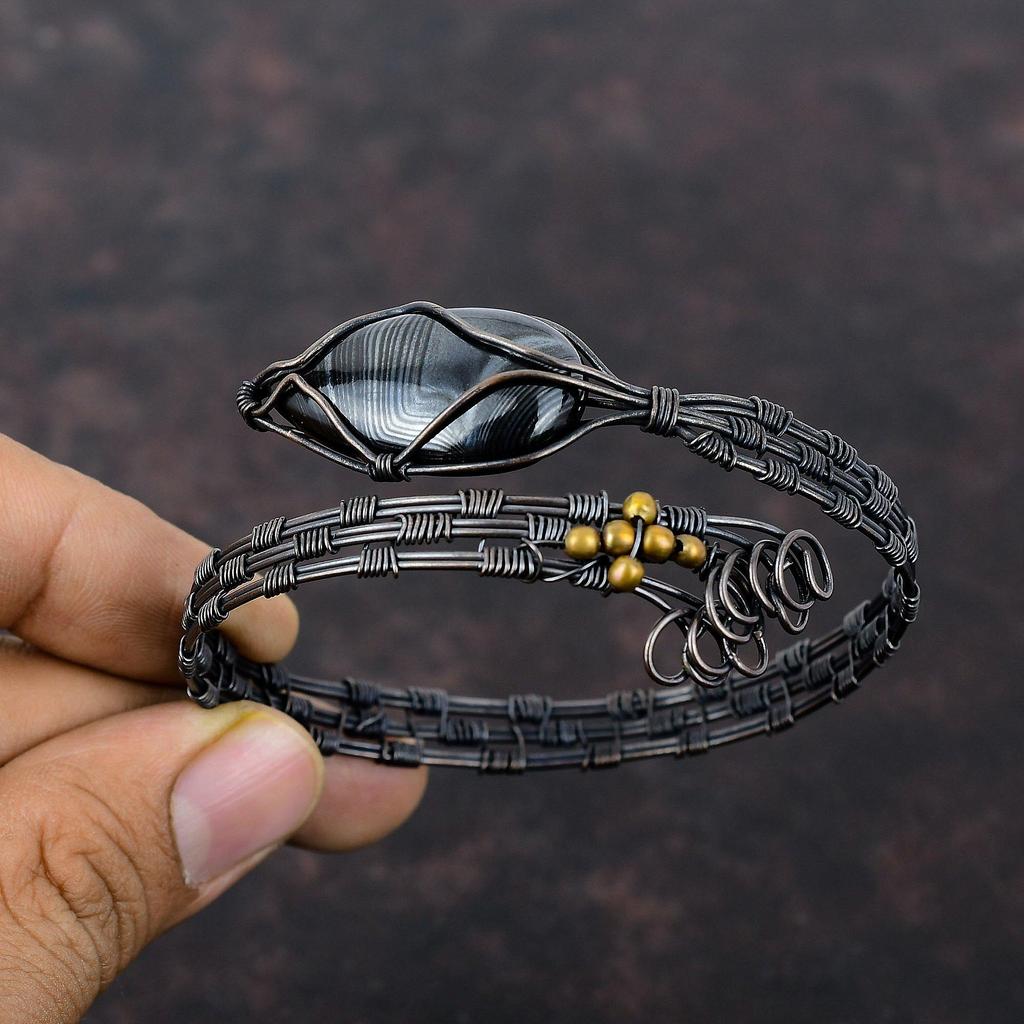 Браслет Psilomelane из натурального драгоценного камня, браслет-манжета из медной проволоки, регулируемый браслет ручной работы, ювелирные изделия из медной проволоки, подарок на годовщину