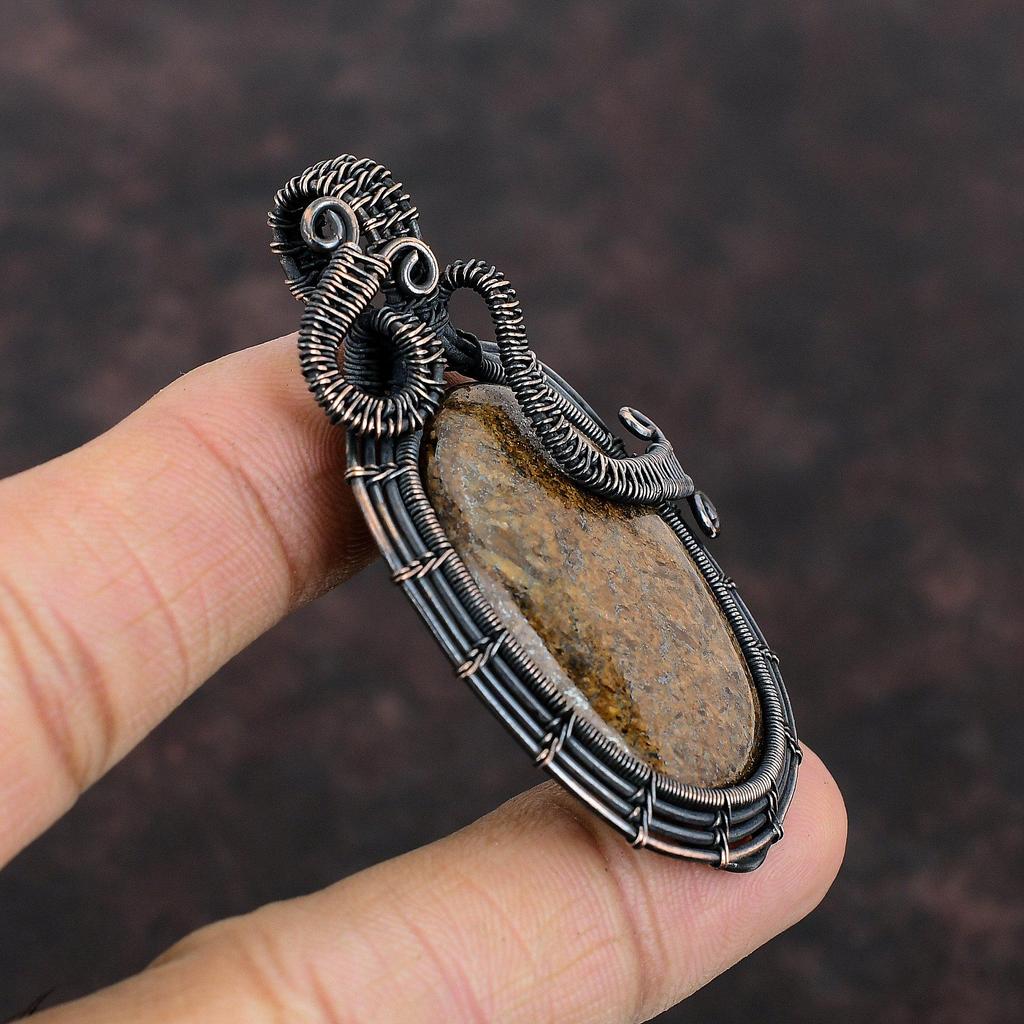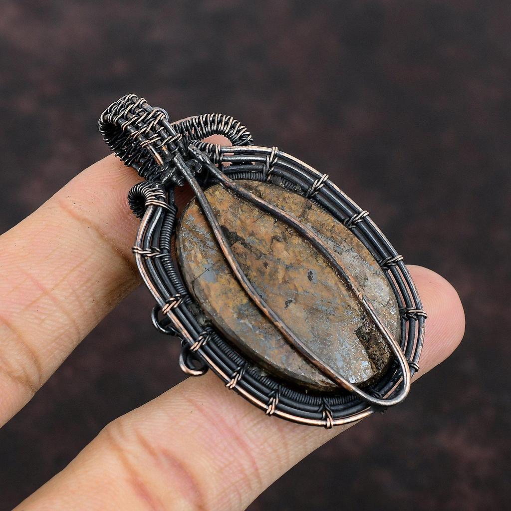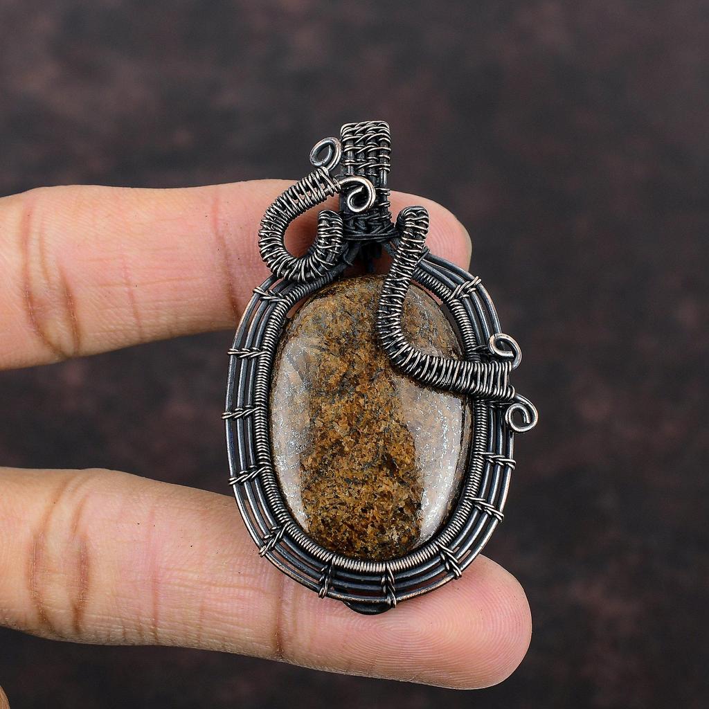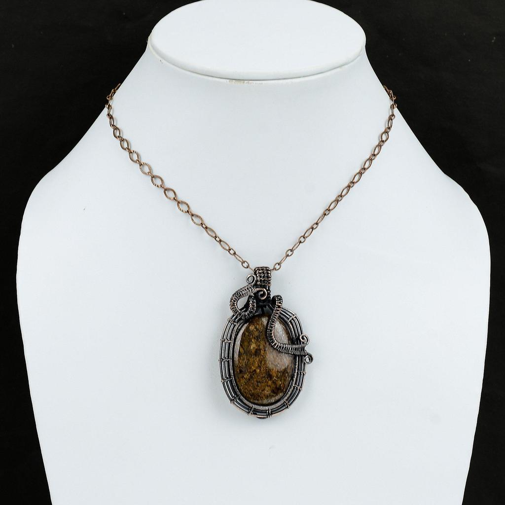 Подвеска из бронзита и меди, обернутая проволокой, подвеска ручной работы, медная проволока, подвеска из натурального драгоценного камня, подарок для нее, обернутая проволокой подвеска