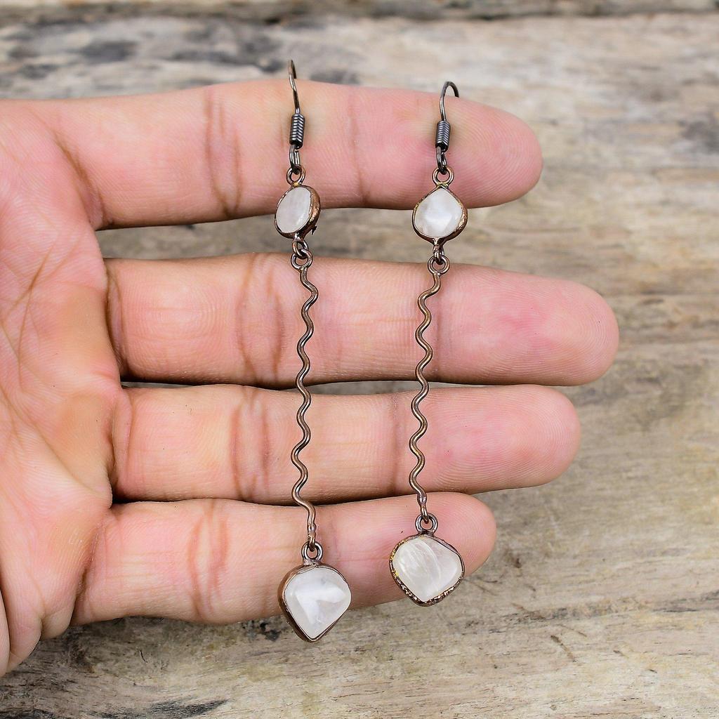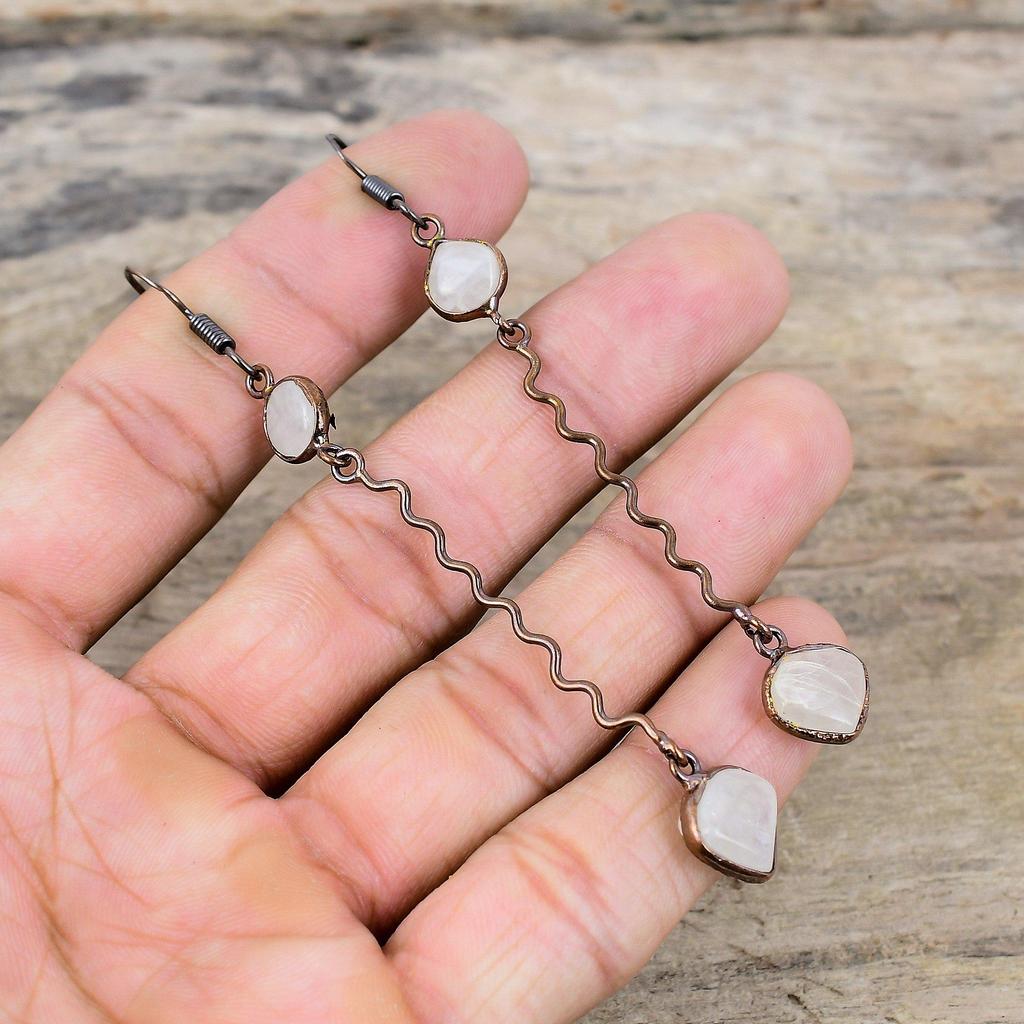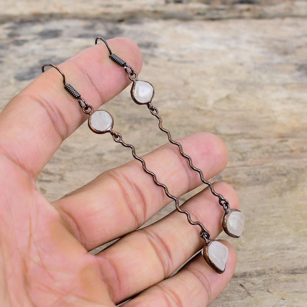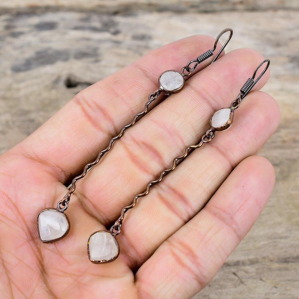 Серьги из радужного лунного камня, медные серьги из гальванопластики, серьги из настоящего драгоценного камня, ювелирные изделия из гальванопластики, серьги ручной работы, медные украшения для подарка