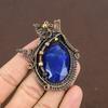 Граненый кулон из синего сапфира, кулон, обернутый медной проволокой, кулон с драгоценным камнем в виде кролика, ювелирные изделия с проволочным дизайном, медные ювелирные изделия ручной работы, подарки для нее