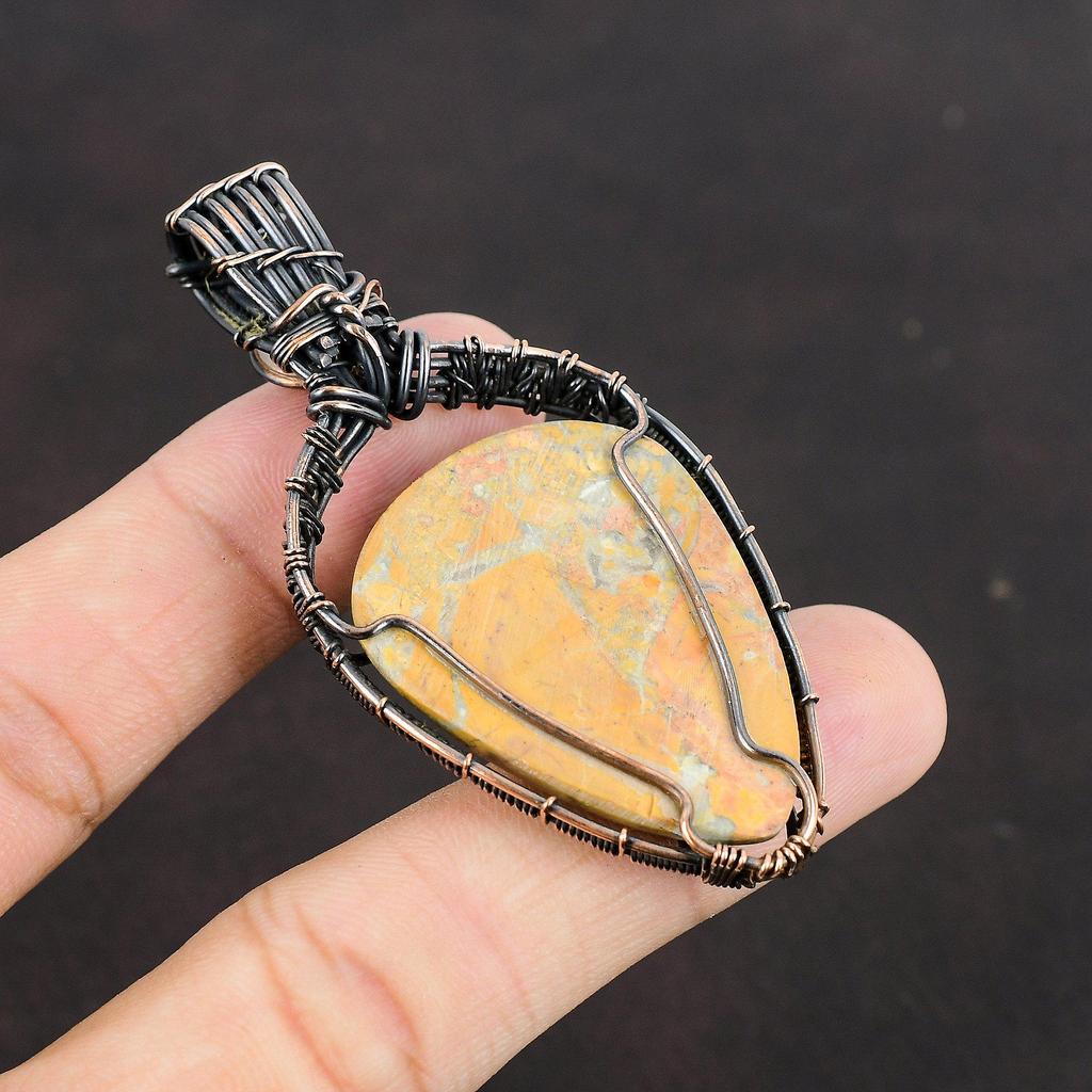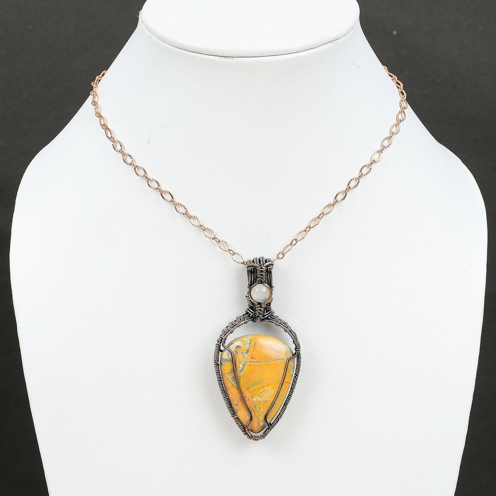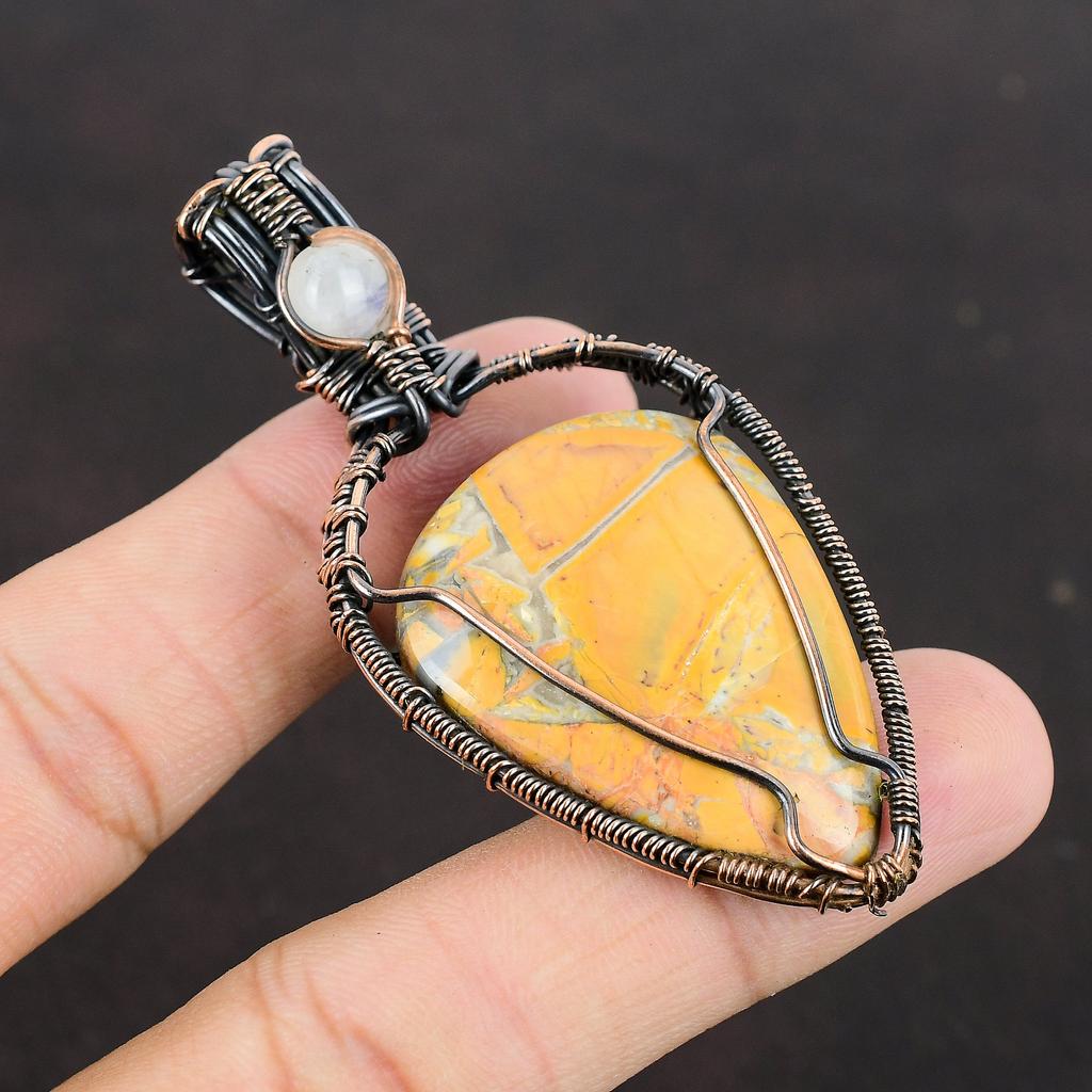 Кулон из яшмы Малигано Кулон, оплетенный медной проволокой Ручная работа Ювелирные изделия из драгоценных камней Подарок для нее Кулон из радужного лунного камня Ювелирные изделия с оплеткой из проволоки