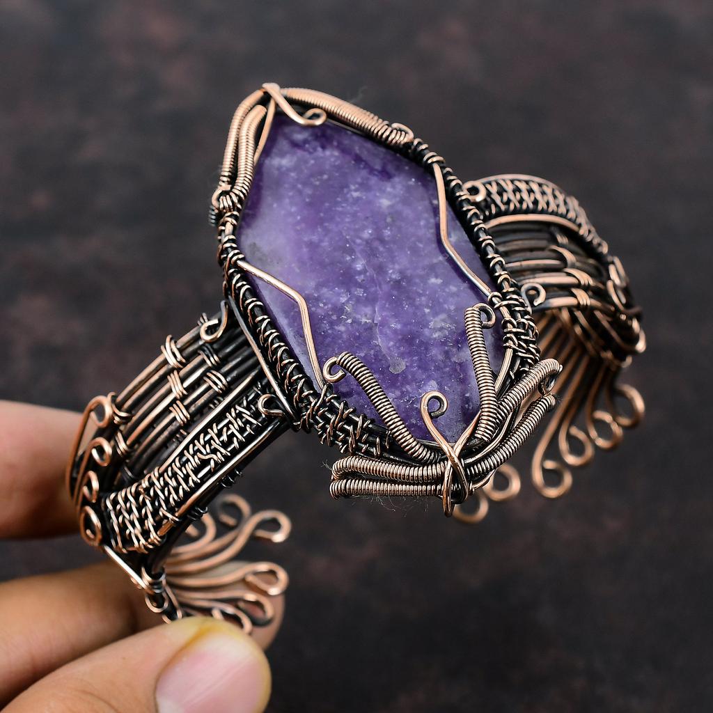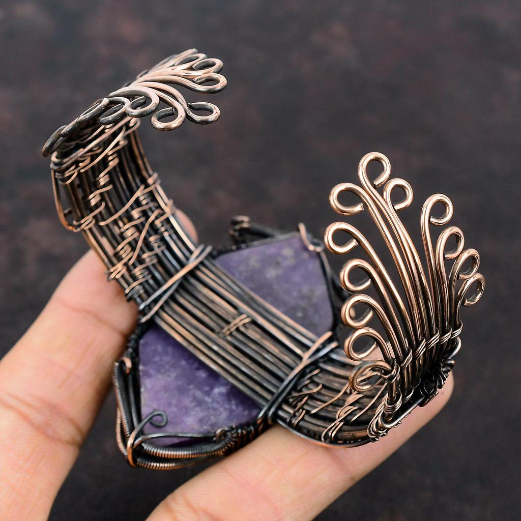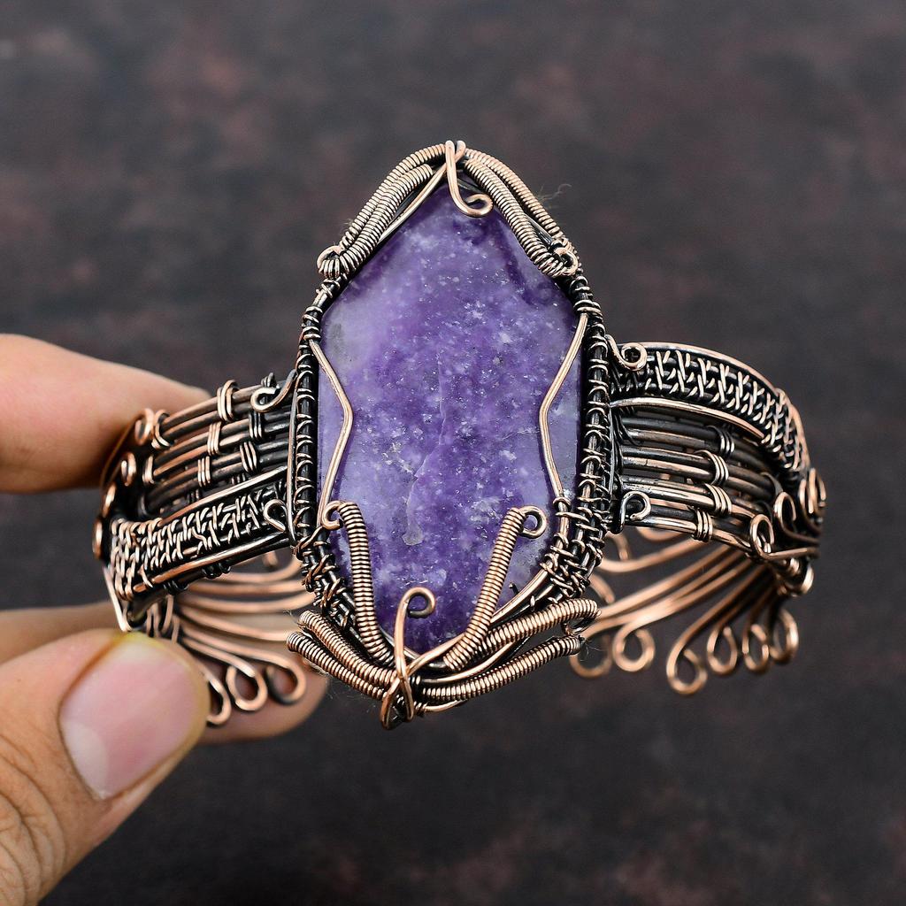 Лепидолит Медный Браслет-манжета Проволочный Браслет Регулируемый Браслет-манжета Медная Проволока Ювелирные Изделия Ручной Работы Браслет-манжета Драгоценный Камень Подарок Для Него