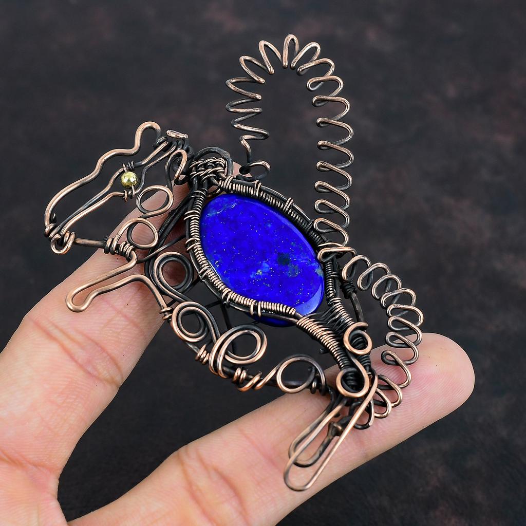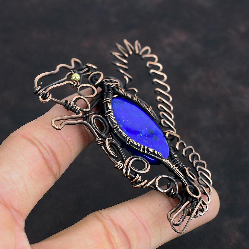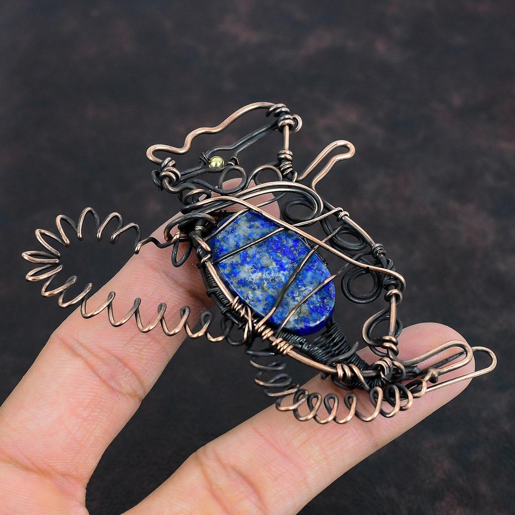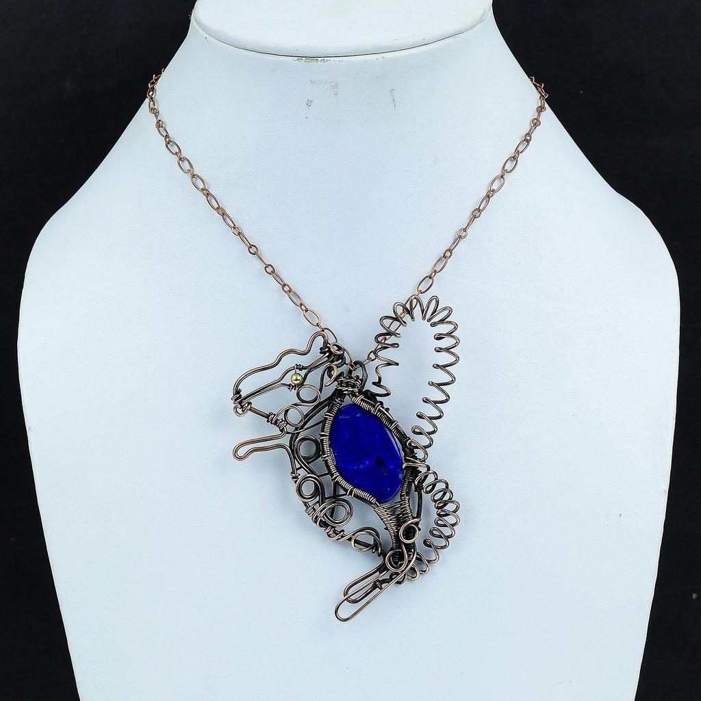 Подвеска из лазурита и меди, обернутая проволокой, подвеска из драгоценного камня, медный кролик, ювелирное изделие ручной работы, уникальный стиль, подвеска, обернутая проволокой, ювелирное изделие, подарок для нее