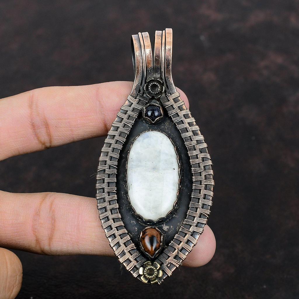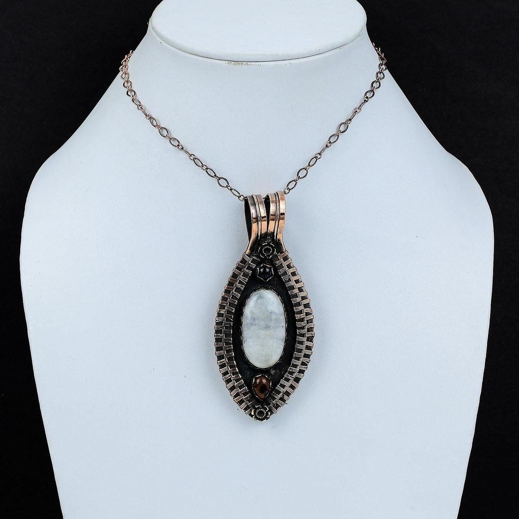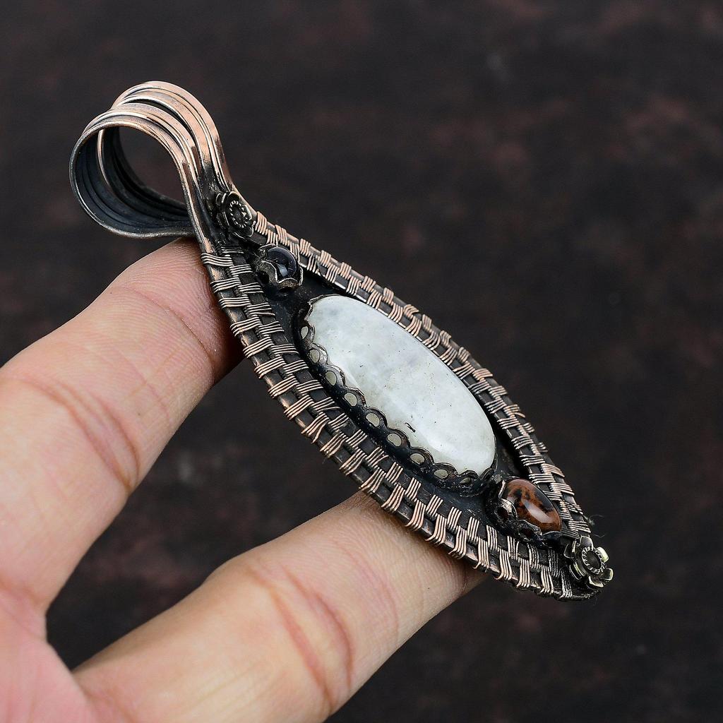 Подвеска из радужного лунного камня, кулон из красного дерева, обсидиана и синего солнечного камня, подвеска из медной проволоки, подвеска из драгоценного камня для подарка, ювелирные изделия ручной работы