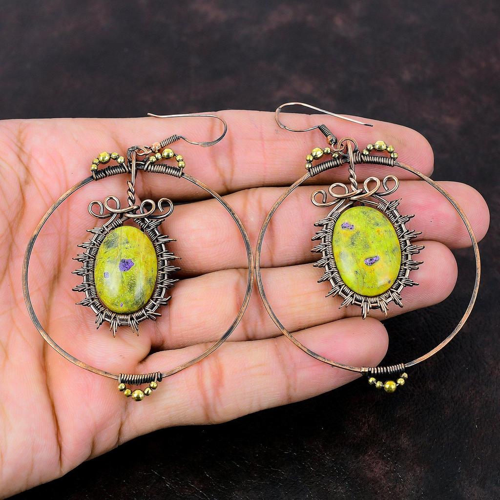 Серьги Stichtite Серьги с медной проволокой, обернутые в обертку Ювелирные изделия с драгоценными камнями Дизайнерские серьги Серьги ручной работы Подарок на годовщину Ювелирные изделия с медной проволокой