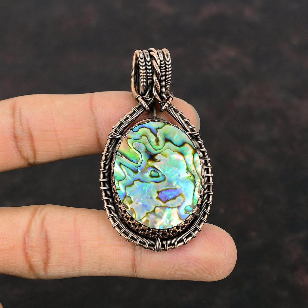 Подвеска из ракушки абалон, подвеска из медной проволоки, ювелирные изделия с драгоценными камнями, кулон ручной работы, уникальные медные ювелирные изделия, подарок для нее, ювелирные изделия с проволочной обмоткой — купить товар онлайн с бесплатной доставкой по всему миру!