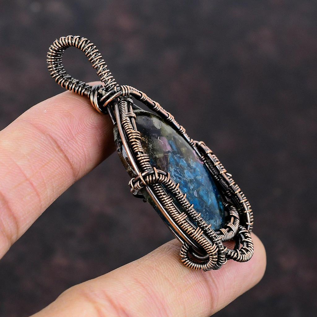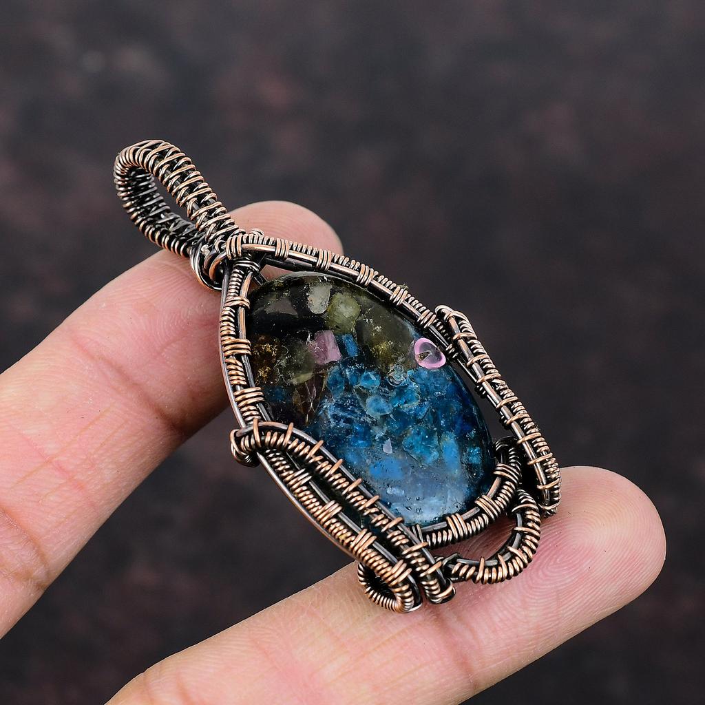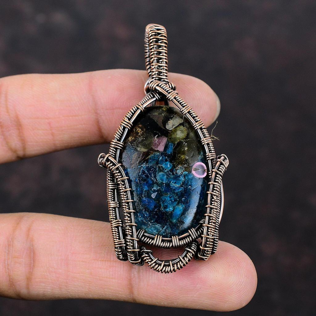 Подвеска с арбузным турмалином, медная проволочная обертка, ручная работа, арбузный турмалин, ювелирные изделия, подвеска с драгоценным камнем, медные украшения для подарка