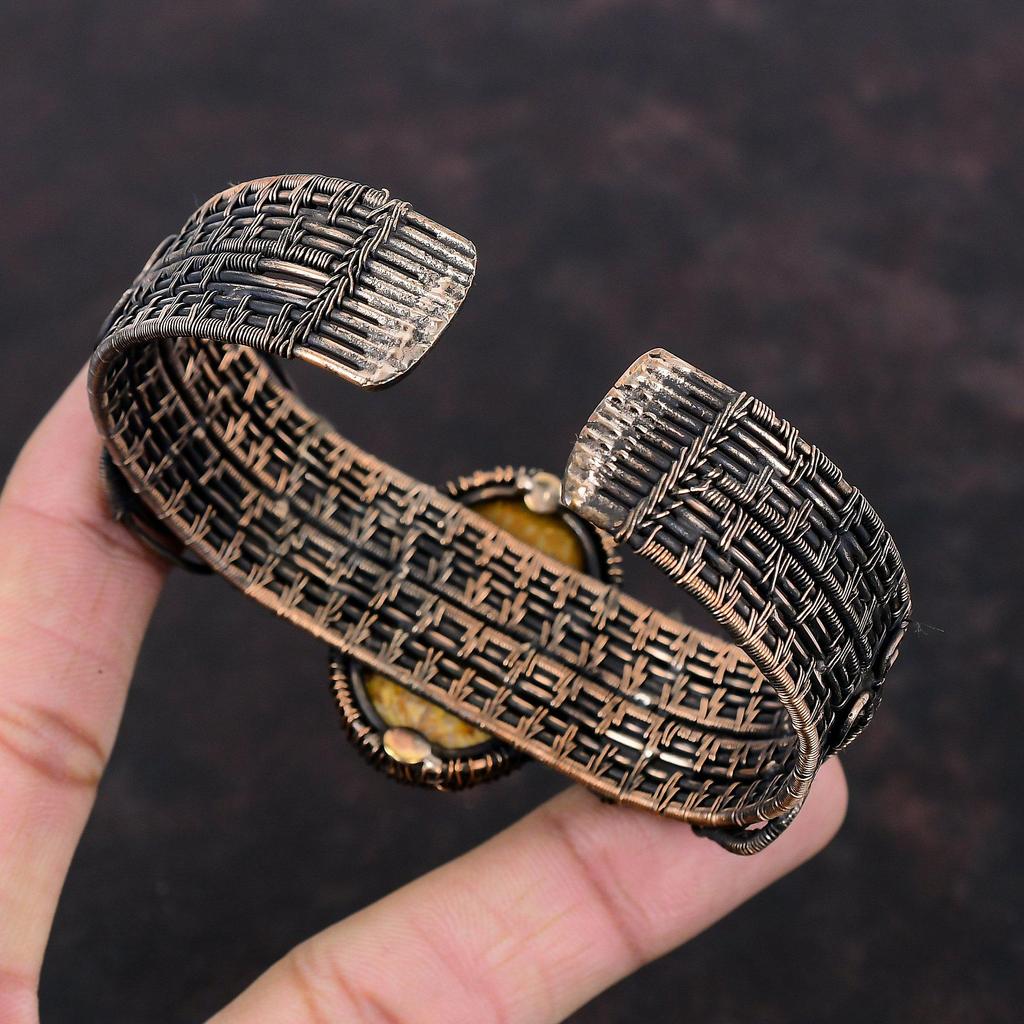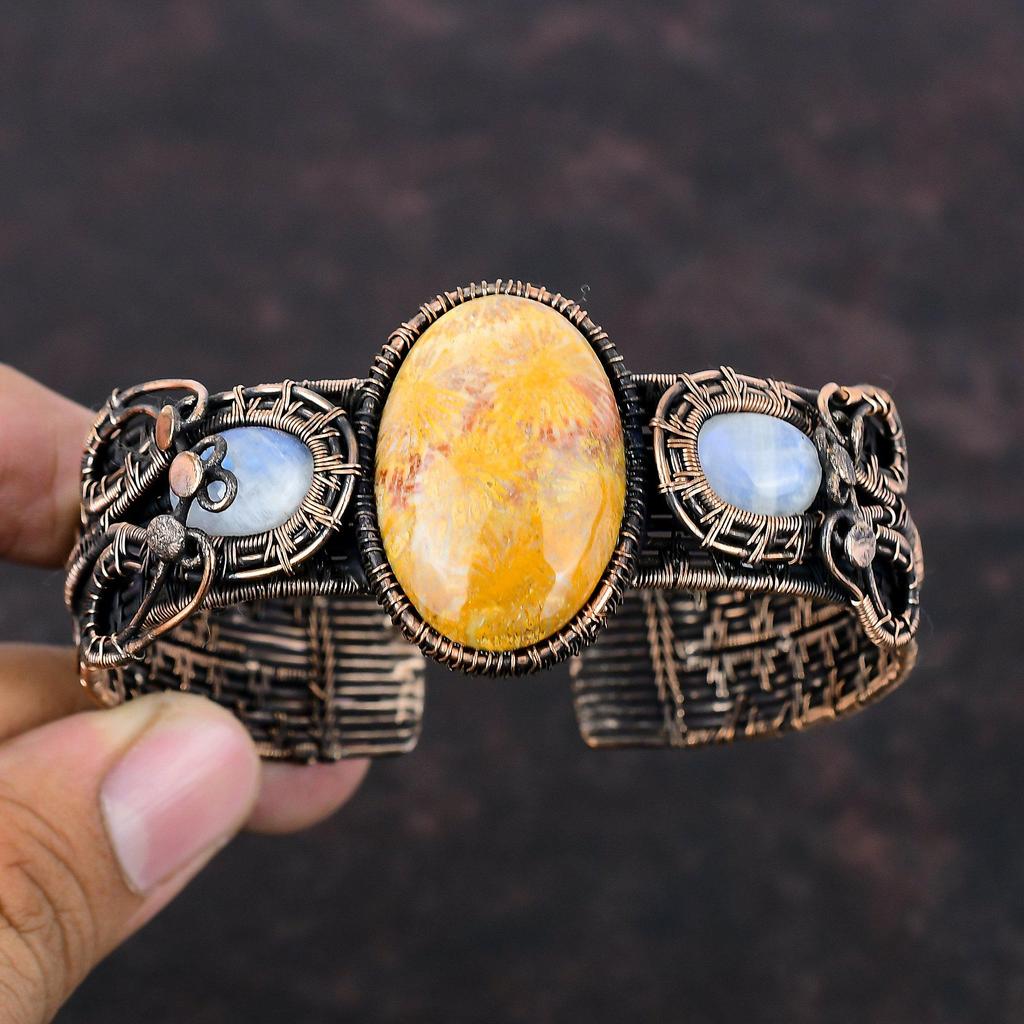 Браслет из ископаемого коралла с драгоценными камнями, браслет-манжета из медной проволоки, регулируемый браслет ручной работы, медные украшения для подарка, браслет из радужного лунного камня