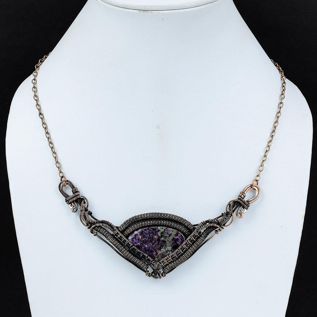 Charoite Necklace Copper Wire Wrapped Gemstone Necklace Adjustable Chain Necklace Copper Jewelry For Gift Handmade Jewelry Stylish Necklace