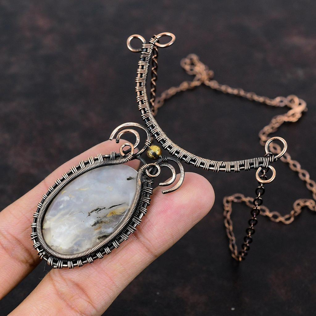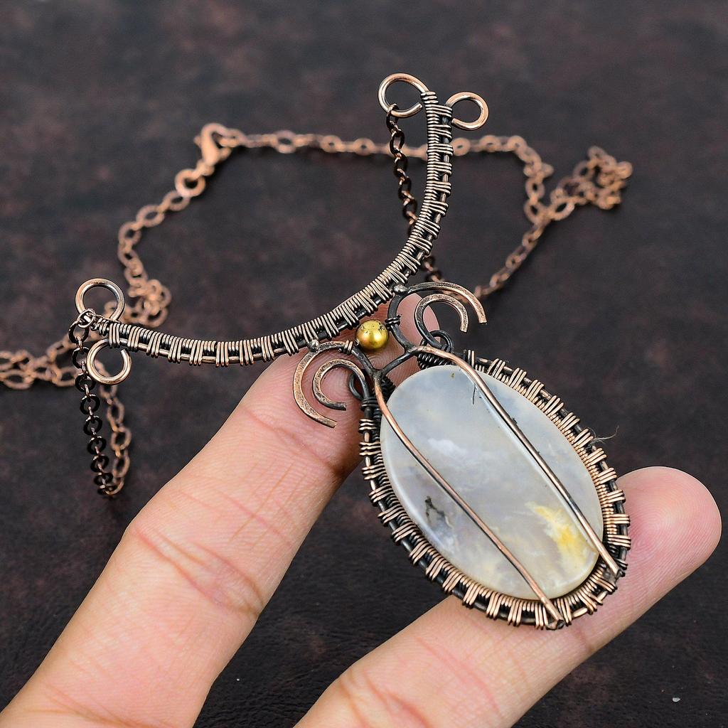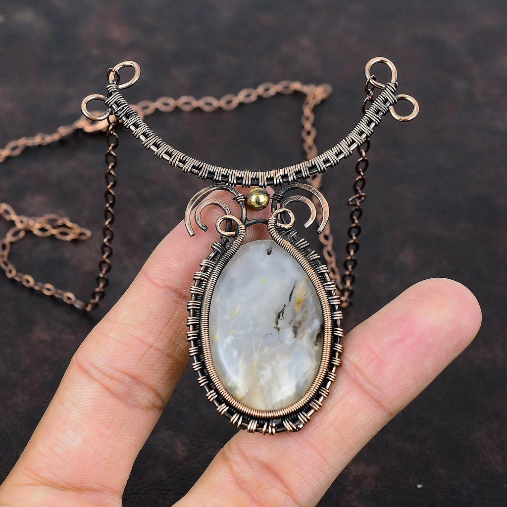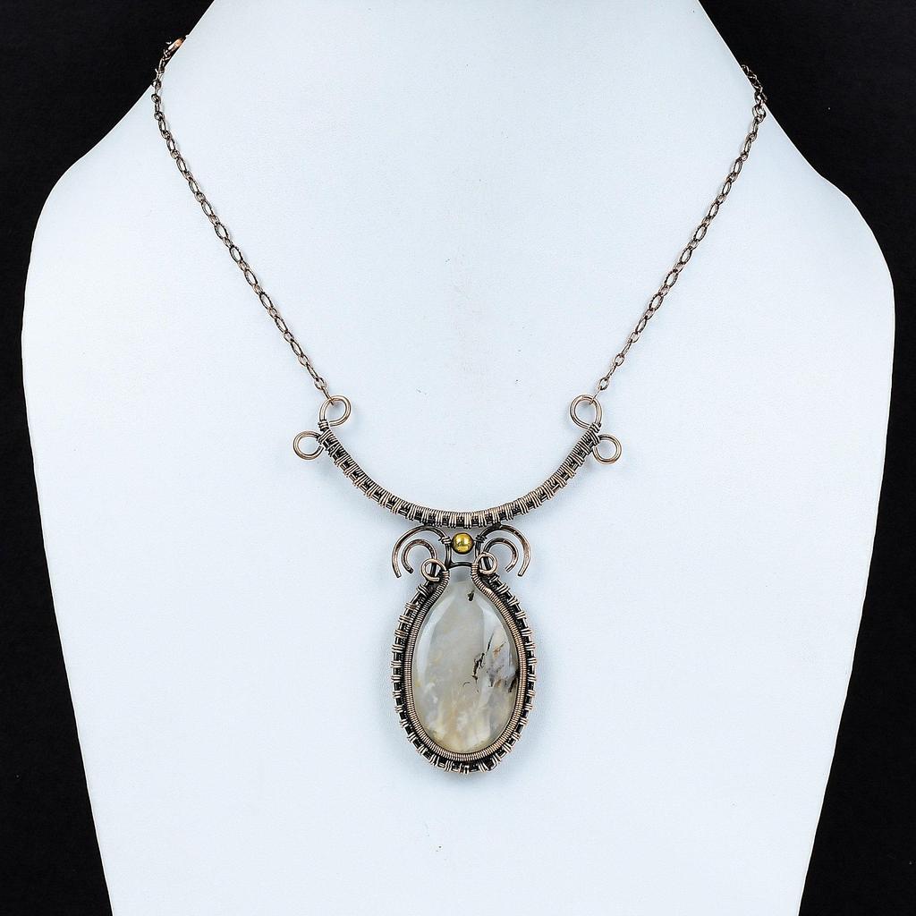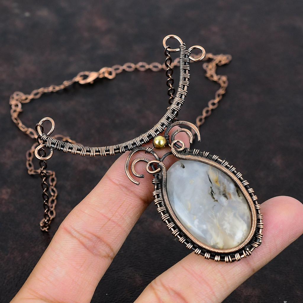 Ожерелье из агата с перьями, обернутое медной проволокой, регулируемое ожерелье, стильное ожерелье ручной работы, медные украшения, подарок на годовщину