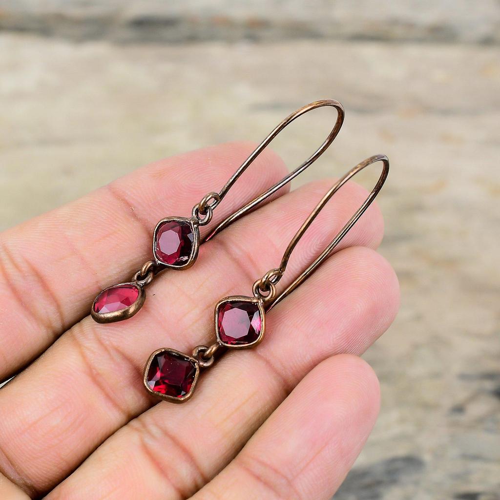 Граненые серьги с розовым турмалином, медные серьги, полученные гальваническим способом, серьги ручной работы с драгоценными камнями, ювелирные изделия из гальванической меди, уникальные серьги для подарка