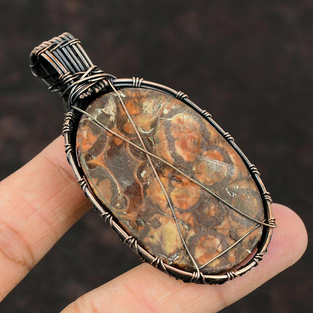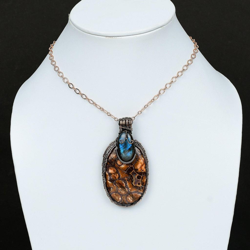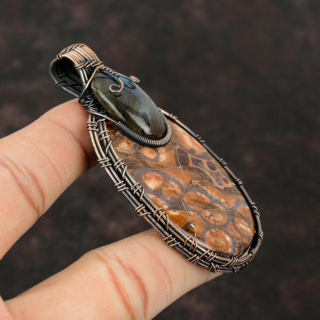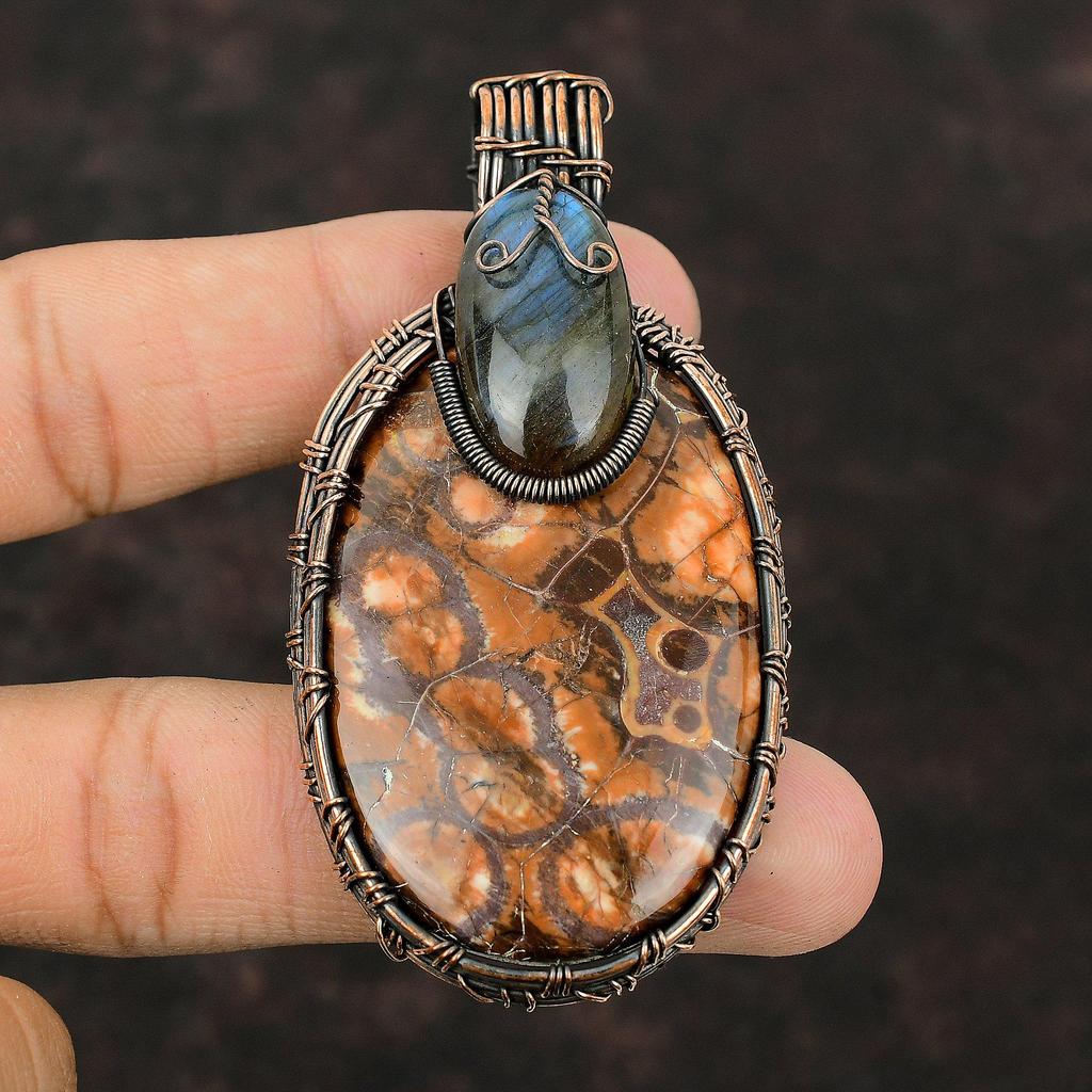Кулон из яшмы в виде птичьего глаза Медная проволока Кулон Ювелирные изделия ручной работы Лабрадорит Драгоценный камень Кулон Медные украшения для подарка Дизайнерский кулон