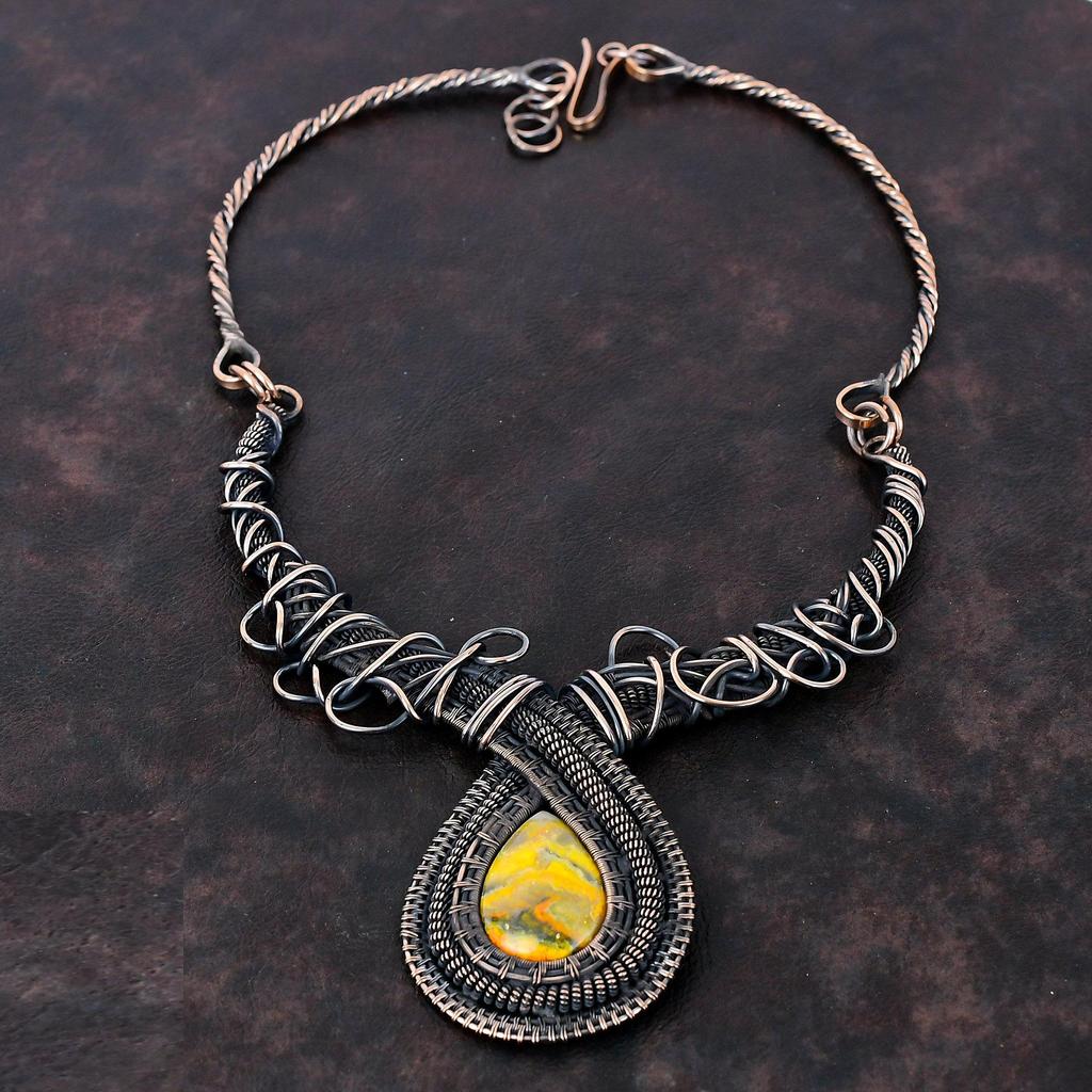 Ожерелье из яшмы шмеля, ожерелье из медной проволоки, регулируемое ожерелье, дизайнерское ожерелье ручной работы, драгоценные камни, медные украшения, подарок для мамы — купить товар онлайн с бесплатной доставкой по всему миру!