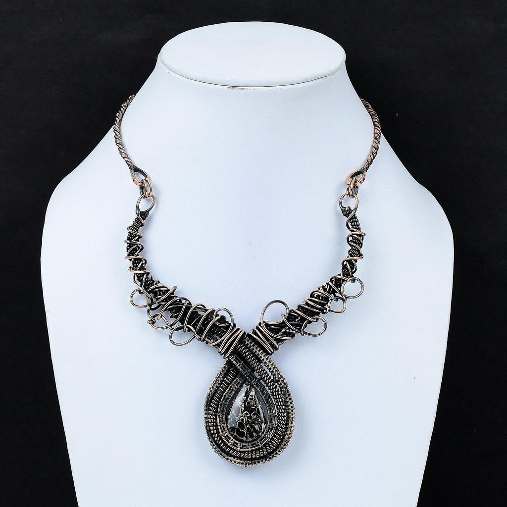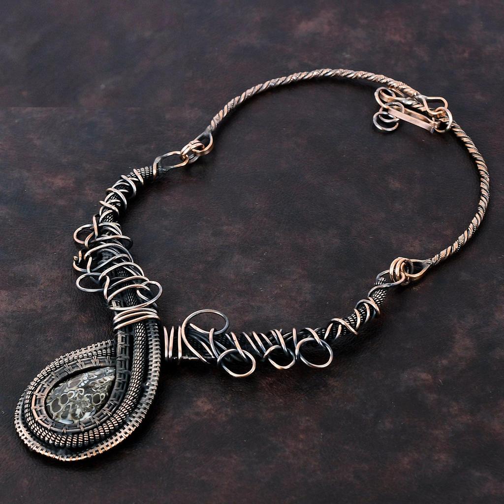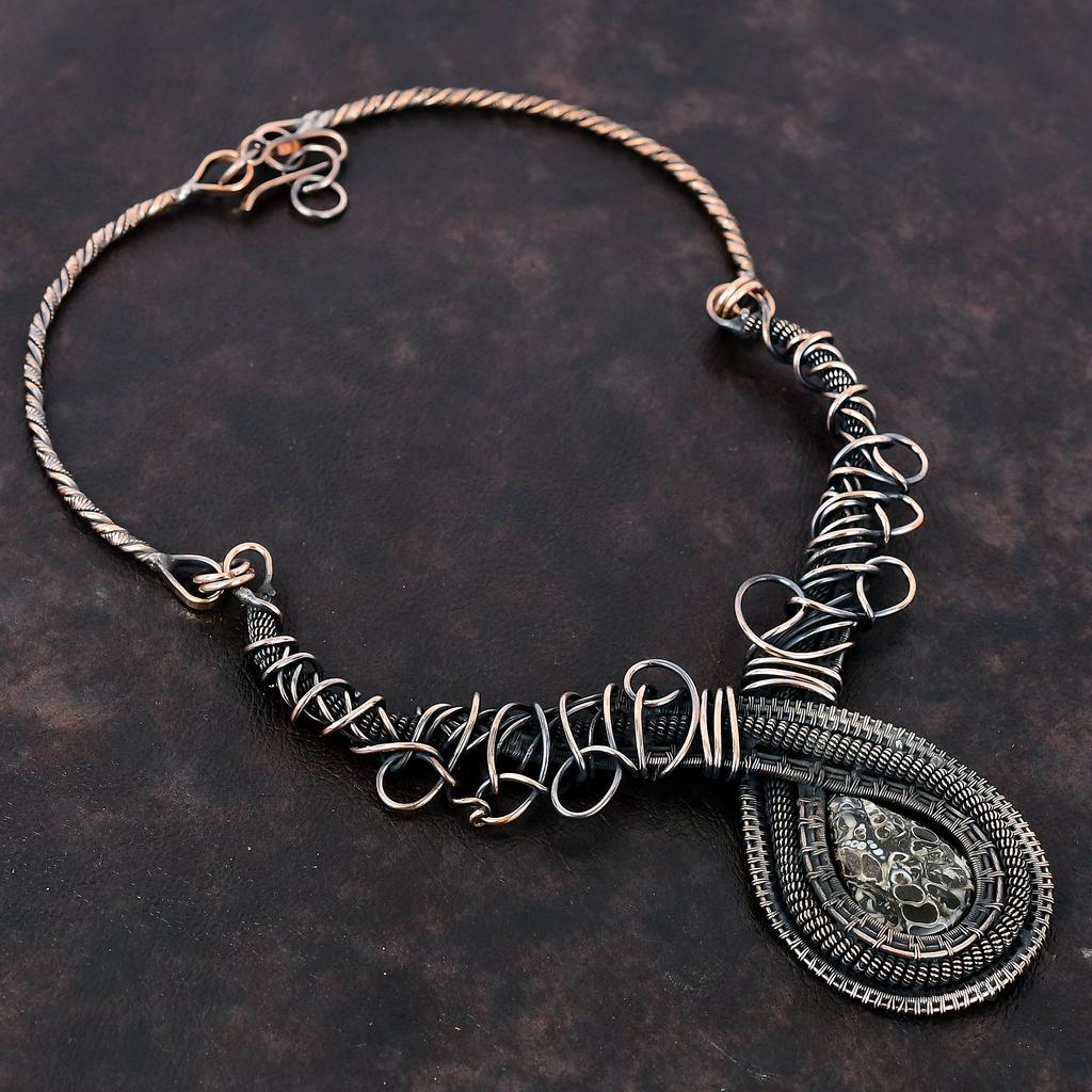 Ожерелье из агата Turritella, ожерелье из медной проволоки с драгоценными камнями, регулируемое ожерелье, старинные медные украшения, ожерелье ручной работы, подарок для женщин