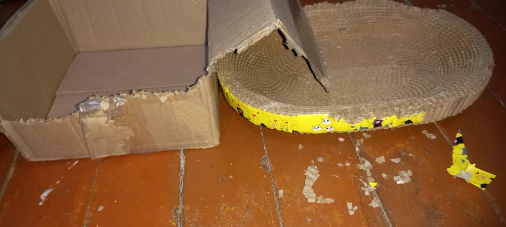 Когтеточка тоже пришла вся деформированная, коты не в восторге, неприятно, не буду больше заказывать, пять звёзд поставила за доставку 😌 Дополняю отзыв😄😄а кошкам понравилось что когтеточка кривая☺😄😄😄